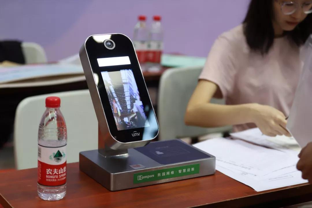 据悉今年我校首次引进了人脸识别技术,短短几秒的人脸扫描,新生的报到信息被迅速录入。“现场师生可以透过大屏幕即时的数据显示,了解新生报到的进展和各个学院的新生比例情况,同时屏幕右方的三幅地图,逐渐密集的点和线直观而有趣地反映了新生生源的分布情况。”迎新现场的负责人介绍道。
