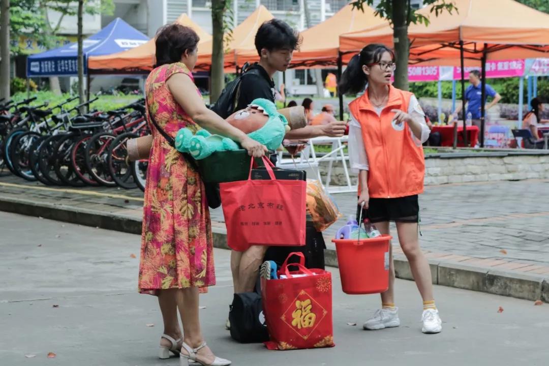 每年的迎新工作,志愿者都是校园一道亮丽的风景线。志愿者许同学从早上负责在宿舍区引导新生入住,同时协助搬运行李,下午则到了体育馆负责引导新生去往各自学院的摊位报道。虽然忙了一天,但在他看来,志愿者是一种传承精神,两年前的他初入校园什么也不懂,在学长学姐的帮助下才能顺利入住宿舍完成报到;两年后的今天,他希望能将这种志愿者精神传承下去,“尽自己所能帮助新生,让他们感受到莞工的温暖。”同时,他也希望新生们能加入志愿者大家庭,将志愿者精神传承下去。