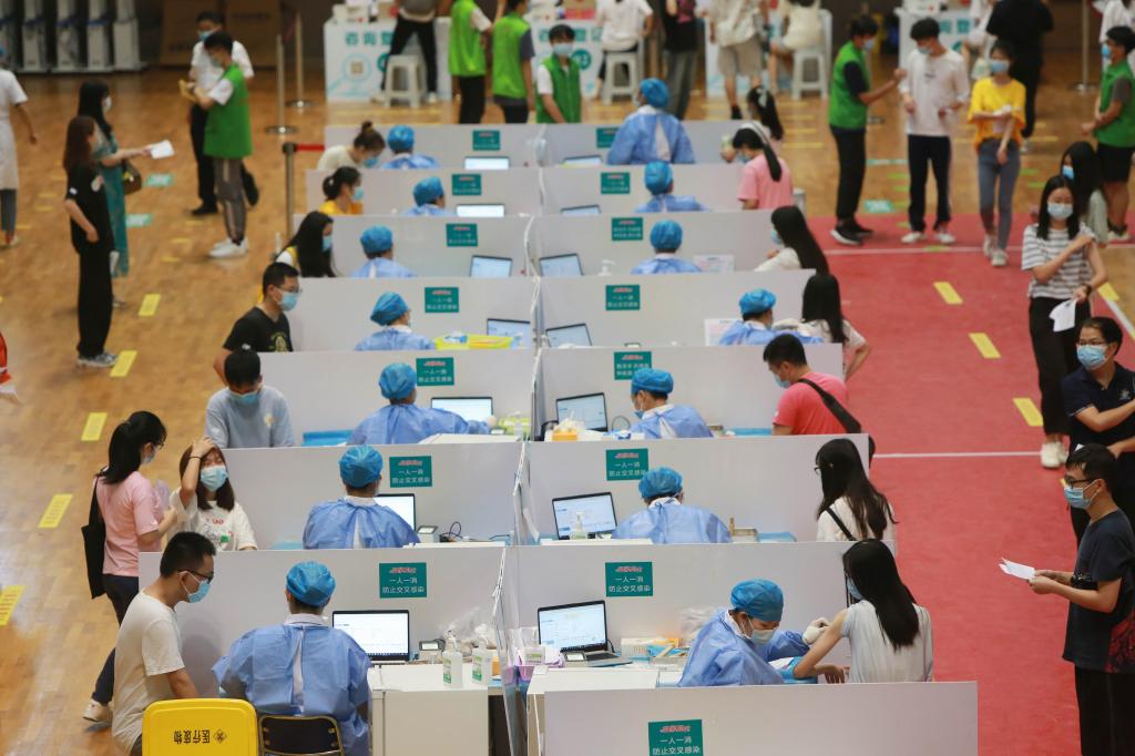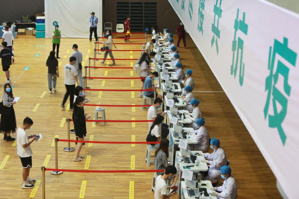 新冠疫苗临时接种场地严格按照卫健部门要求划分为候诊区、咨询区、接种区、留观区和异常处置区等多个功能区域。