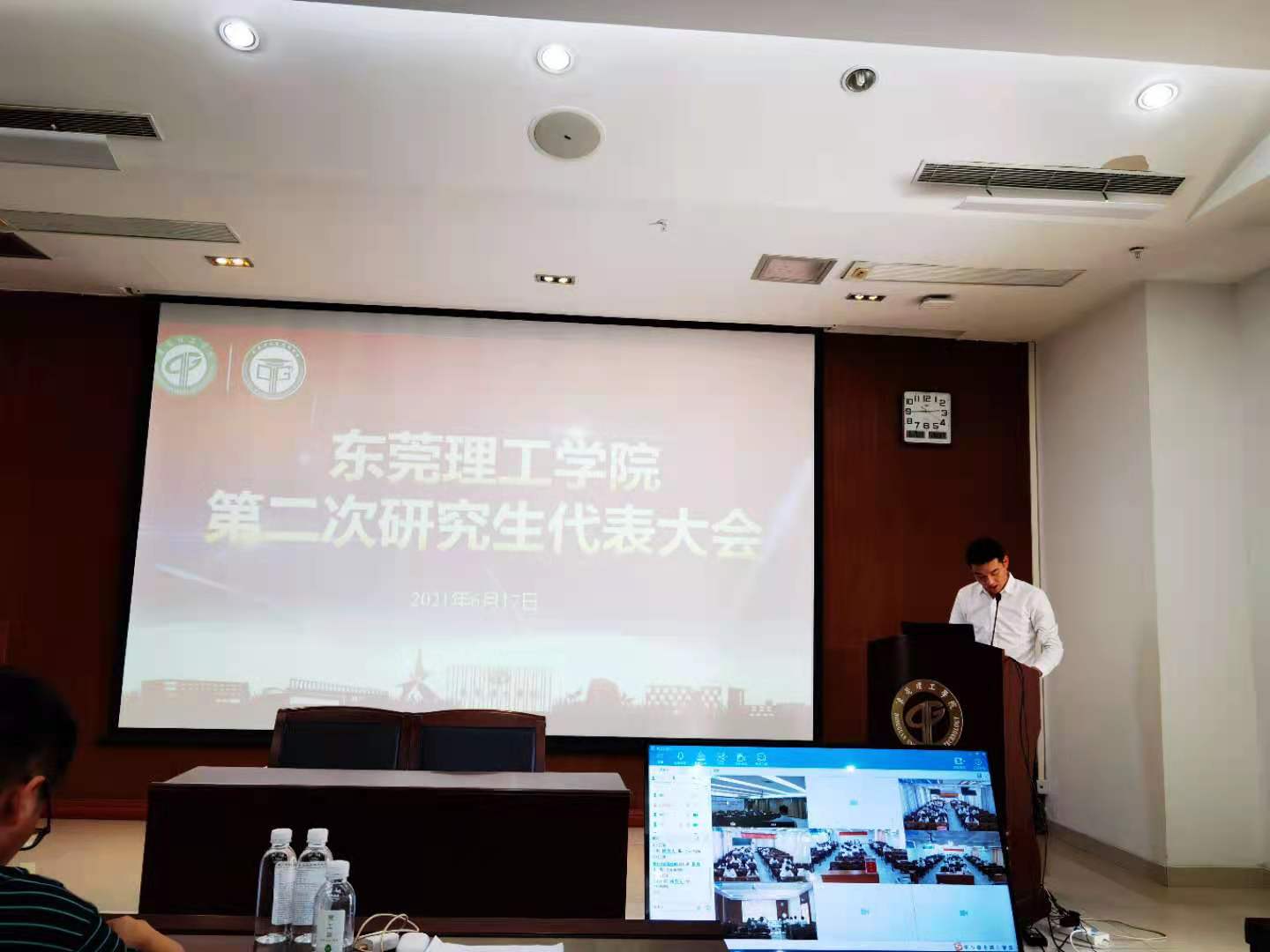 根据疫情防控要求,第十九次学代会、第二次研代会首次采用“主会场+分会场”线上开展的模式,在松山湖校区分别设置了主会场和6个学代会分会场、2个研代会分会场,在莞城校区设置了2个学代会分会场。同时,要求全体学生代表、研究生代表做好佩戴口罩、测量体温等各项防疫措施。