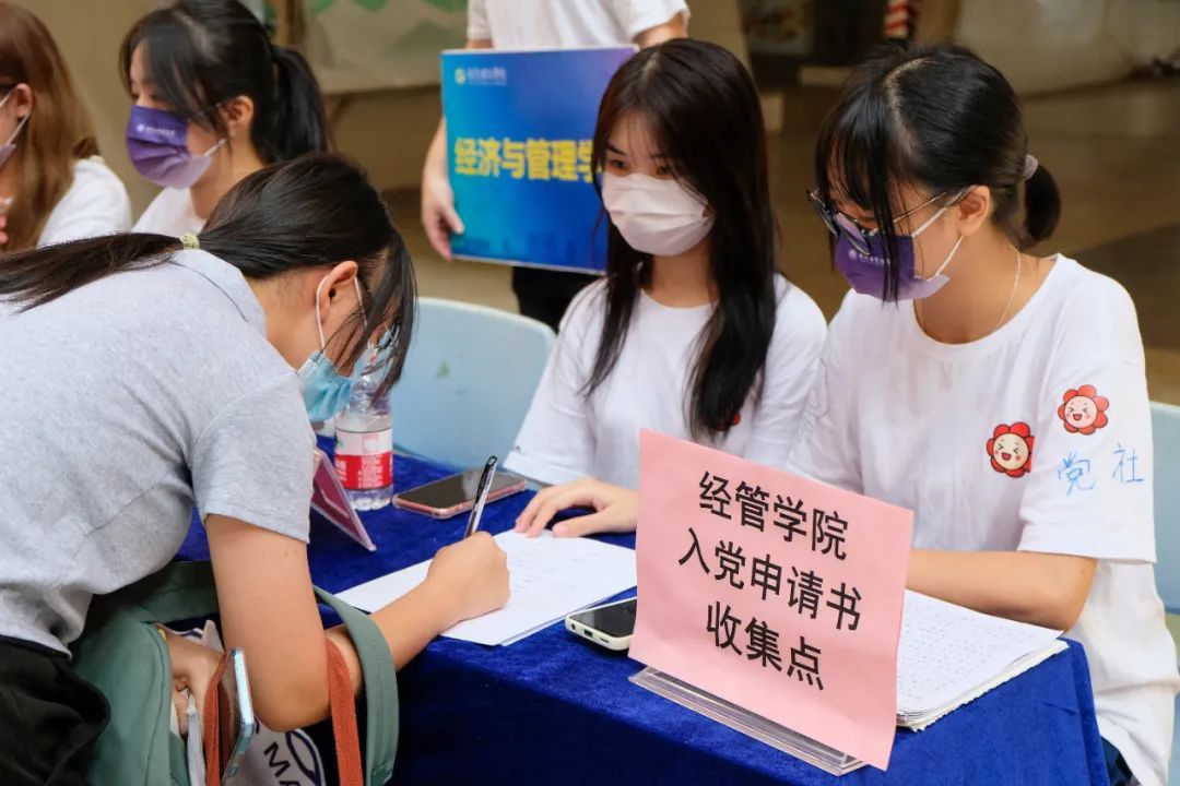 机械工程学院和经济与管理学院在新生报到处设立了入党申请书提交点,现场分别收到入党申请42份和118份,鼓励有入党意愿的同学从开学第一天起就积极向党组织靠拢。