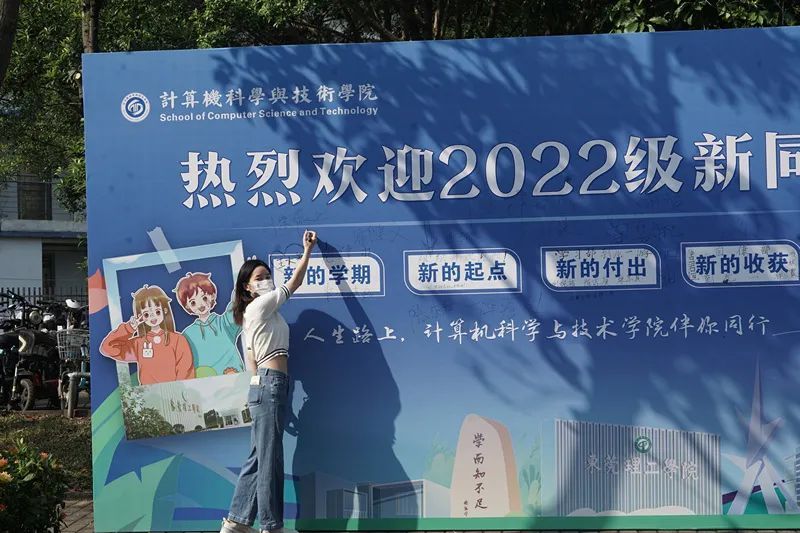 国际微电子学院和计算机科学与技术学院则为新生布置了签名板,让前来报到的新生们将名字留在签名板上,开启新的人生阶段。