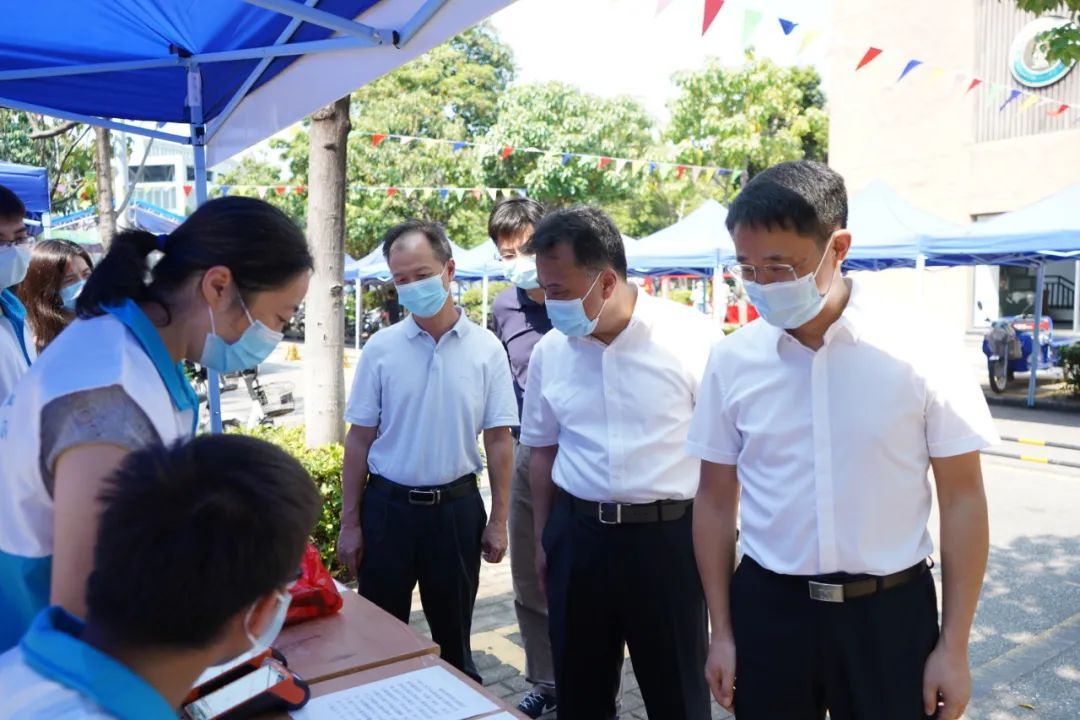 上午10点,校党委书记成洪波,校党委副书记、校长马宏伟,校党委副书记李忠红及副校长李文芳分别到两校区检查指导新生报到工作。校领导来到新生进校处、业务咨询点、学院迎新大本营,详细了解迎新工作情况和新生报到数据等内容,并与现场的新生们亲切交流,欢迎同学们的到来。