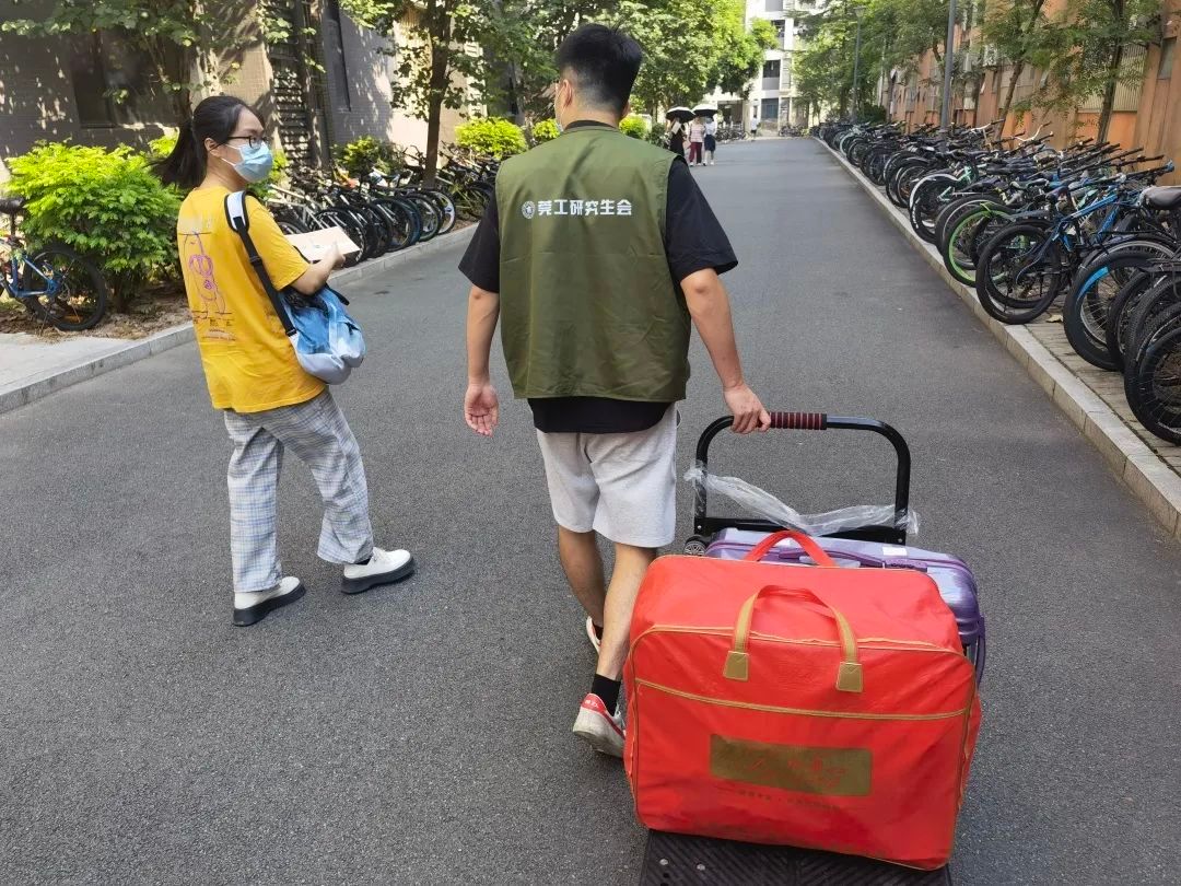 校研究生会首次在莞博社区24栋楼下开设了研究生新生咨询点,组织师兄师姐为2022级的研究生们答疑解惑,分享校园生活的经验,并在各学院研究生报到处帮助许多研一“萌新”们搬运行李。校研究生会负责人陈柱基说:“新生们给予我们的每一句感谢,都是我们全力践行‘我为同学做实事’的强大动力。第二批新生报到时,我们的咨询点会继续开设,欢迎各位新同学前来咨询!”