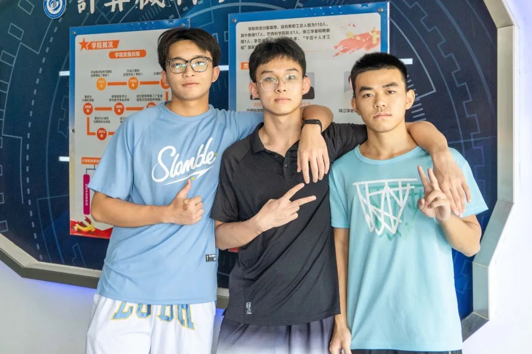 计算机科学与技术学院2022级计算机大类的黎俊烺、郑子健与电子工程与智能化学院2022级通信工程1班的蒋鹏高中三年都是同班。他们经常在课后相约打篮球,共同备战高考、互相打气,见证了彼此的成长。高考放榜后,结合老师的建议,他们一起报考了莞工,最后成功相聚在松山湖校区。“得知和郑子健分配到同一个专业、班级甚至同一个宿舍时,我的心情很激动。”黎俊烺介绍道。虽然蒋鹏没有和他们一个学院,但他们打算多约上几场大家都热爱的篮球,延续这份友谊。
