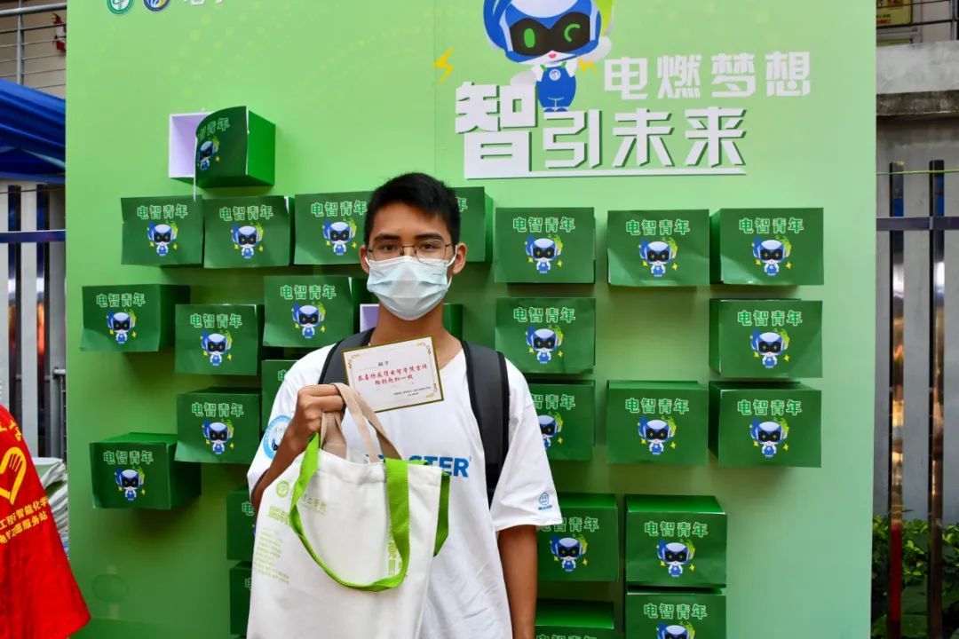 电子工程与智能化学院以“电燃梦想,智引未来”为主题,举办新生开盲盒活动,本学院新生报到后可在旁边的盲盒墙抽奖,奖品有来自学院的祝福纸条,也有学院特色周边钥匙扣、U盘,让新生在报到的第一天接住开学的好运。