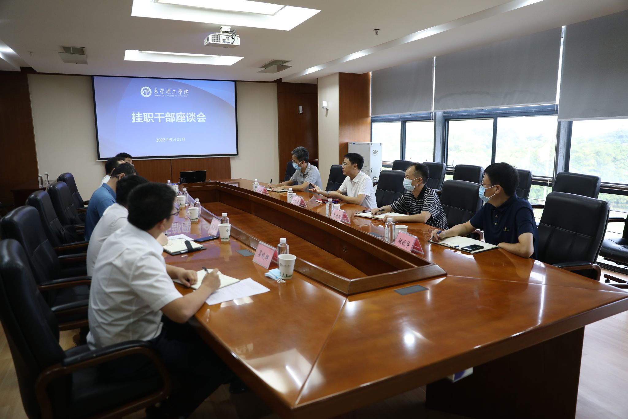 会上,挂职干部结合东莞城市发展和产业需求,联系岗位实际,相互交流了在校外单位挂职的工作情况,并围绕学校新型高水平理工科大学示范校建设的重点工作建言献策。他们提出,学校要不断提升办学能力和育人水平,特别是提升人才培养能力,积极搭建人才培养基地,为东莞城市建设培养和输送更多的高素质创新人才。