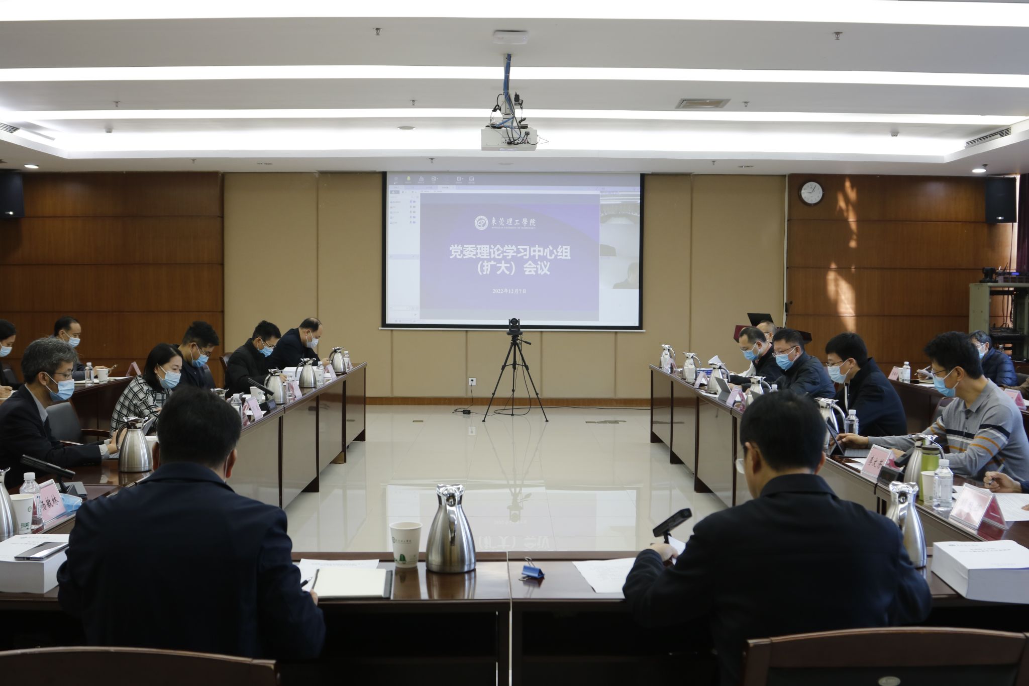 12月7日,学校召开党委理论学习中心组(扩大)学习会,持续学习贯彻党的二十大精神,深入学习领会习近平法治思想,部署推进学校依法治校工作。校党委书记成洪波主持会议并讲话,校领导马宏伟、赖日辉、李忠红、杨敏林、李文芳,党委委员彭晓波、胡钦华、邹琼,纪委副书记邢大立,相关职能部门负责人参加会议。