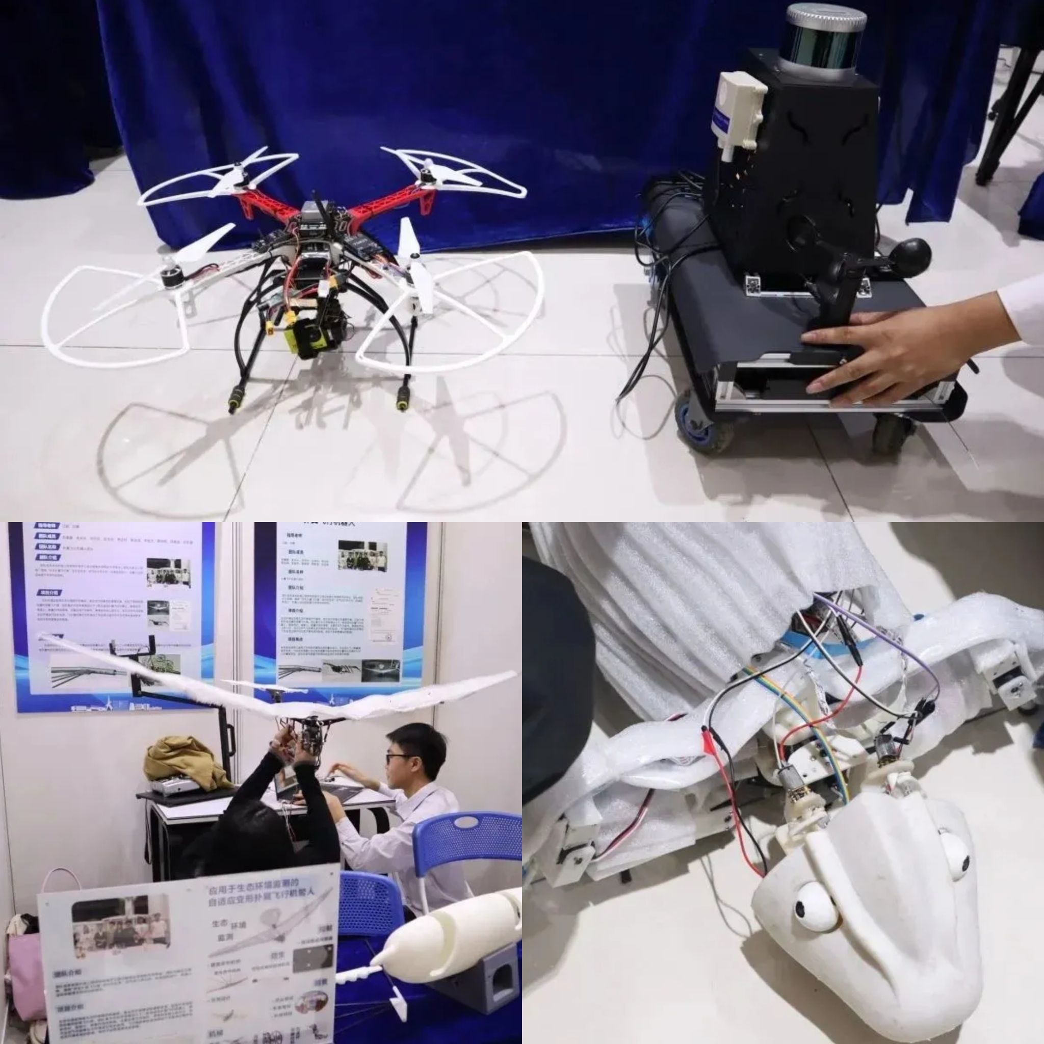 选拔赛现场上,各团队尽显风采。在自然科学类项目中,选手们放眼二维量子世界和新型材料侃侃而谈。在哲学社会科学类项目中,项目选手们从多角度深切关心中国民生福祉,既关注老人养老问题,也思考在复杂社会背景下各行业的治理方向。而在此次“挑战杯”校赛上最值得一提的科技发明类项目中,“畅想未来”成了项目的代名词:仿生扑翼鸟、空中水母仿生机器人、仿生机械蛇等项目将仿生技术拉近现实;高浓度工业废水净化的水滴科技、城市大气污染诊断分析与防治一体化的智慧应用系统等“科技+环保”项目助力绿色生态;智能书桌、智能家居、虚拟数字人形象手语翻译系统等智能服务项目致力于提升生活幸福感。