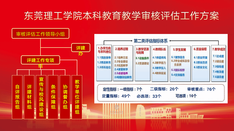 马宏伟强调,学校要以新一轮审核评估为契机,坚持“以评促建”,紧抓创新发展新机遇,更大力度地推进专业建设、课程建设、教师队伍建设、质量保障体系建设等重点工作,激发建设活力、提升建设水平;坚持“以评促改”,驱动内涵发展新转变,持续深化重点领域和关键环节改革,着力解决制约学校发展的深层次体制机制问题,全面提升人才自主培养质量;坚持“以评促管”,推进转型发展新实践,不断完善人事制度、教学管理制度、资源配置等,构筑全员质量参与的“大质保”体系;坚持“以评促强”,谋取高质量发展新成就,加快人才培养改革进程,抓实人才培养质量“最后一公里”,实现高质量发展新作为。