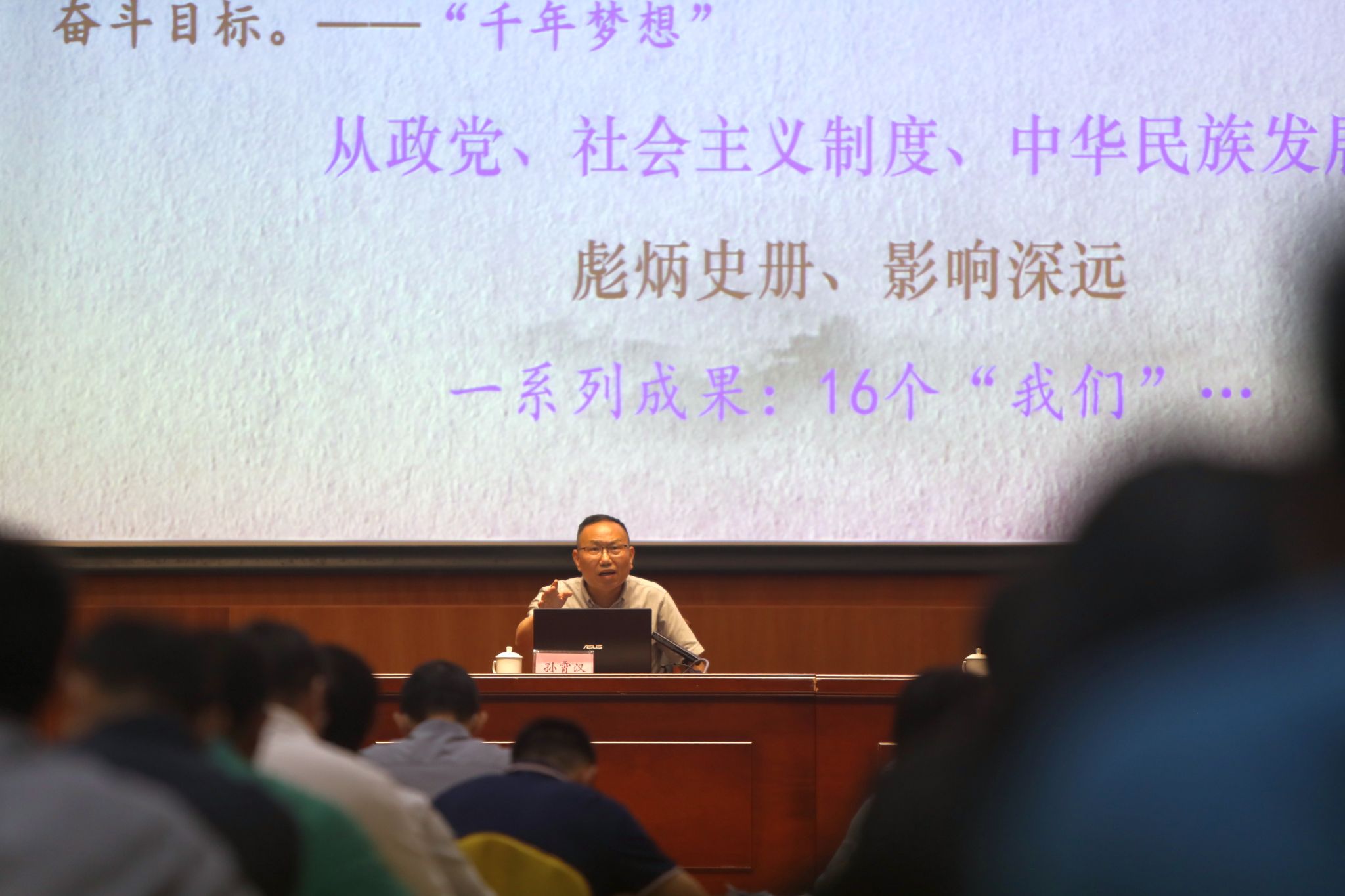 5月11日,东莞市委宣讲团成员、社科联兼职副主席、市委党校孙霄汉教授作题为《学思想、强党性、重实践、建新功》的辅导报告。孙霄汉围绕“用党的创新理论武装全党的重大意义”“深刻领会习近平新时代中国特色社会主义思想”“学习要求”三大模块,运用具体案例和数据,带领与会人员深入学习领会习近平新时代中国特色社会主义思想。
