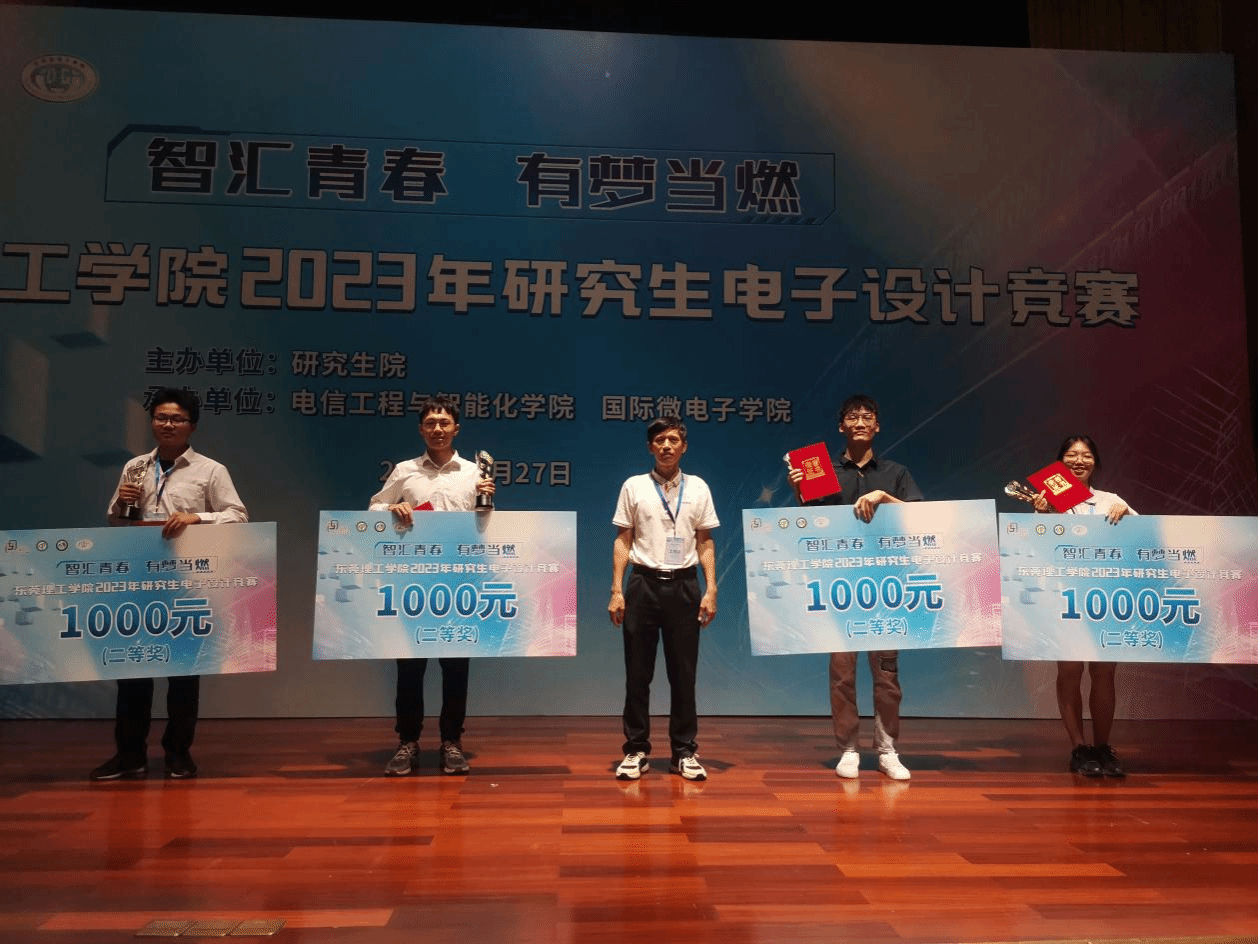 在颁奖仪式上,吴黎明教授就此次比赛作品质量和学生答辩表现进行点评。他表示,选手们的敏捷思维和独到想法给他留下了深刻的印象,参赛作品立题新颖,思路开阔,完成度较高,作品评审更是优中选优的环节。他提到研电赛的目的在于推动电子信息类研究生培养模式改革与创新、培养研究生创新协助能力和提高工程实践能力,希望选手们从作品创新点和讲解能力出发继续打磨作品,更上一层。随后,评委为获奖团队进行了颁奖。