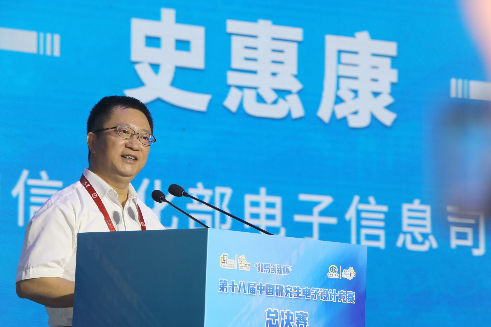 史惠康高度肯定了本届研电赛参赛队伍和作品成果。通过作品,他感受到了参赛师生在竞赛过程中的思考和付出,也看到了新一代研究生的主动担当精神、专业精神和青春活力。史惠康强调,‍‍电子信息产业是国民经济的战略性、基础性和先导性产业。特别是以集成电路、先进计算、人工智能等为代表的新一代信息技术与制造业加速融合,对改造提升传统产业、巩固延伸优势产业、发展壮大新兴产业、孕育孵化未来产业具有重要作用。希望同学们通过本届竞赛活动,相互交流学习,‍‍提升实践能力,做新时代科技报国的排头兵,建设创新型国家和制造强国的生力军。