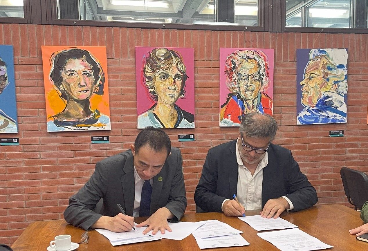 在阿根廷阿尔图罗·豪雷切国立大学,代表团一行与该校副校长、工程与农学学院院长Miguel Binstock工程师会面,社会科学研究所所长Sergio De Piero博士出席会面。Miguel Binstock介绍了学校学生情况以及中文课程,双方洽谈了两校在语言课程、人才联合培养等方面的合作,并签署了合作谅解备忘录。此次合作将为双方的语言课程和人才培养提供更加便利的条件。