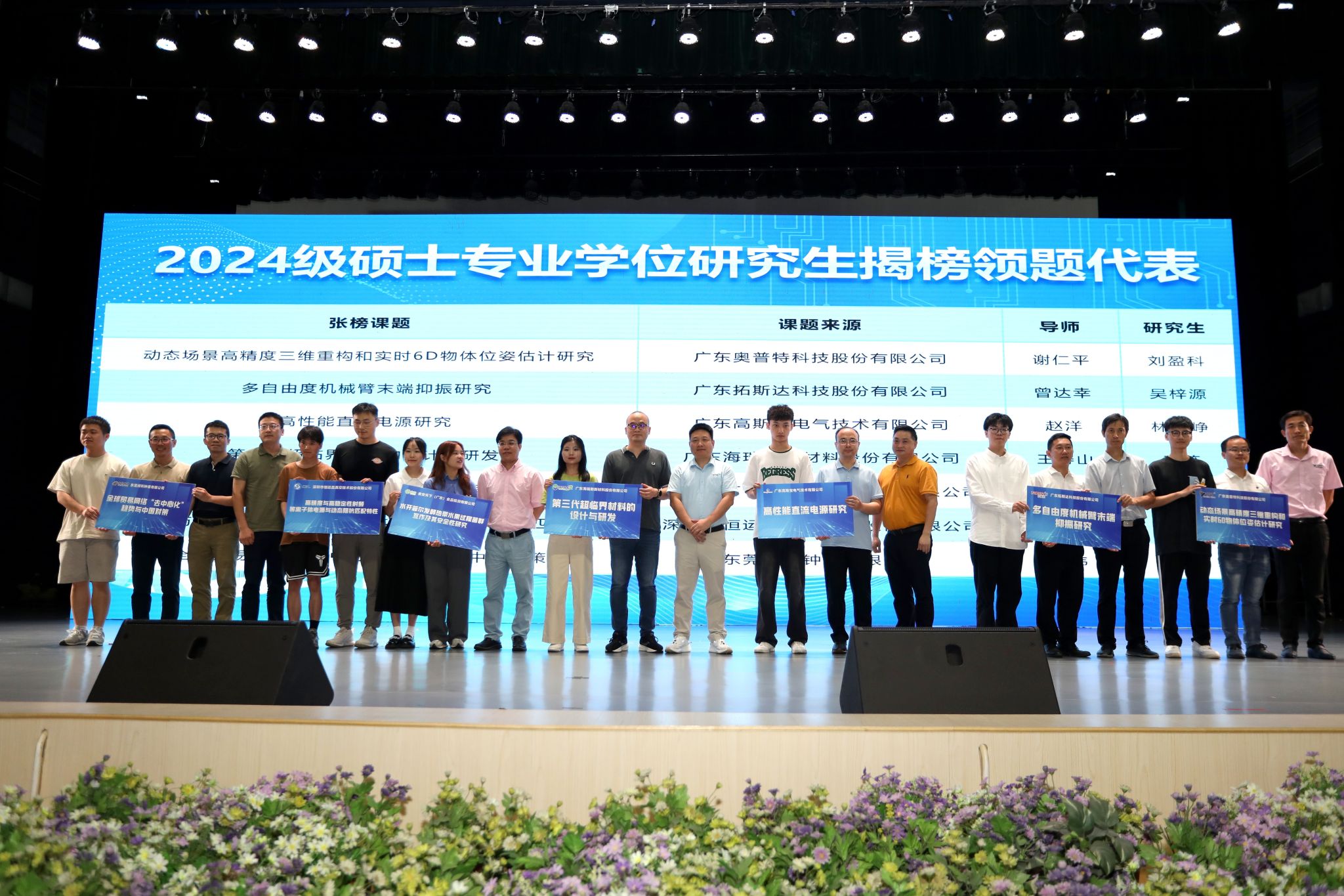 广东奥普特科技股份有限公司、广东拓斯达科技股份有限公司、广东高斯宝电气技术有限公司等7家企业相关负责人也作为张榜课题提供企业代表,现场将课题交到组队揭榜的新生及导师手中。这一刻,不仅标志着同学们即将踏上充满挑战与机遇的选题实践之旅,也开启了校企合作的新篇章,双方将以课题为抓手,共同推动技术创新与人才培养的双赢。
