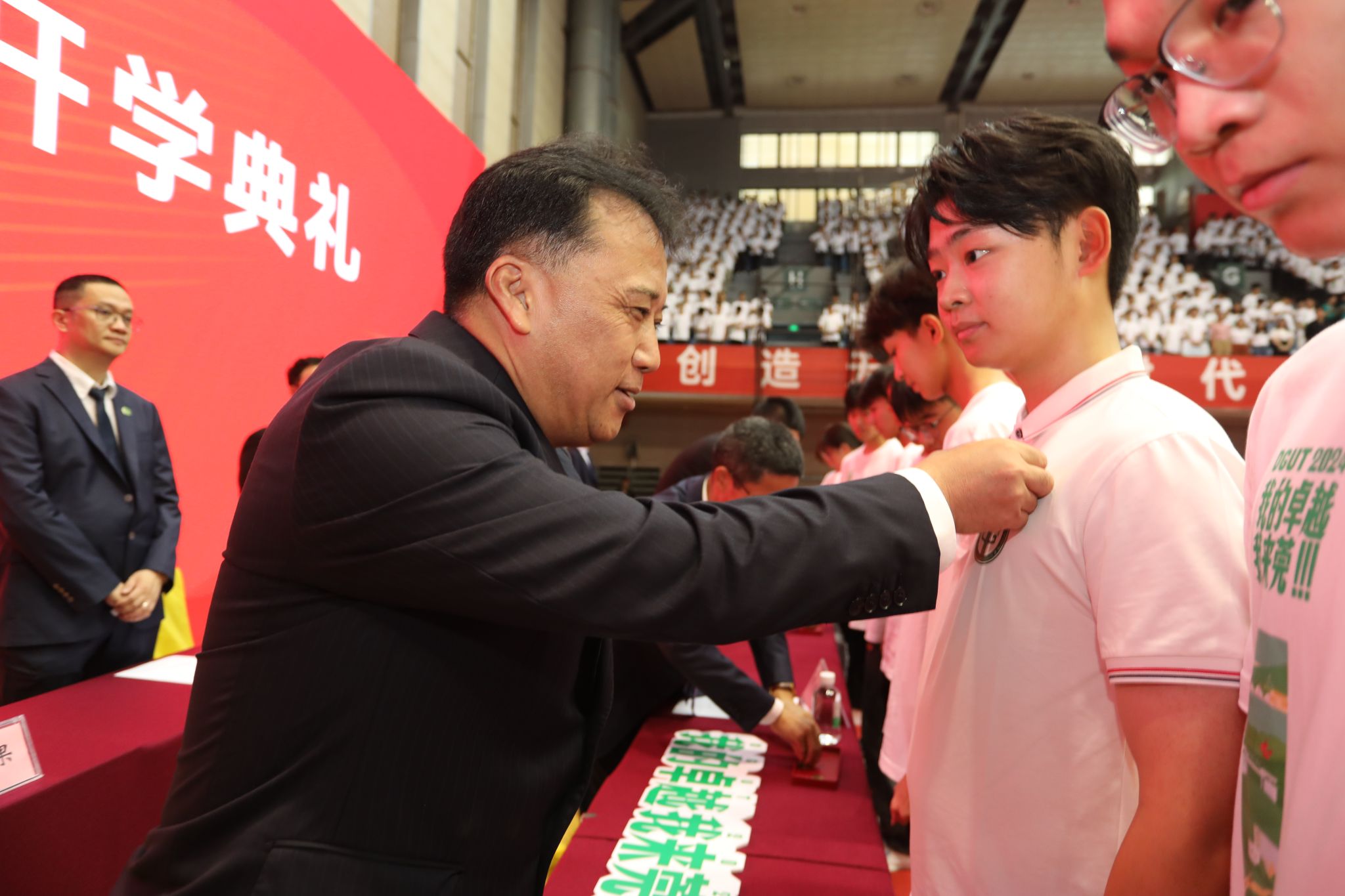 上午10时整,开学典礼在雄壮的国歌声中拉开序幕,全体参会人员目视国旗缓缓升起。随后举行新生佩戴校徽仪式。在全场人员的见证下,主席台前排领导为新生代表佩戴校徽,台下全体新生同样身着莞工服,将校徽佩戴于胸前。这标志着同学们正式加入莞工大家庭,也代表着莞工精神的传承。