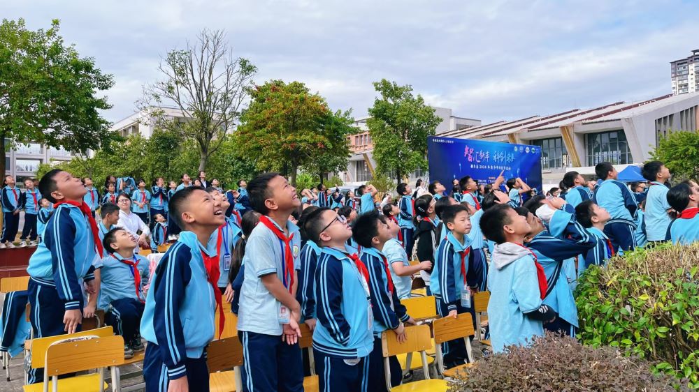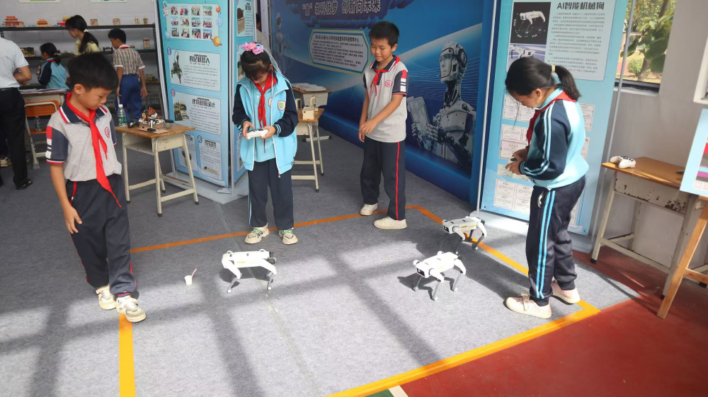 科技节搭建了科学教育的新场景,让山区孩子们脑洞大开,激发出“头脑风暴”,点燃了孩子们的科学梦想,科学探索的热情高涨。科技节设置了14个展厅,参展的中小学和幼儿园,各显神通进行布展,营造爱科学、学科学的良好氛围。展厅陈列学生科创小制作合计约2000余件,作品涵盖物理类、航空航天类、交通创新类、智能生活类、信息技术类和脑科学类等。科技节还为我校对口开展“广东省全口径全方位融入式帮扶粤东粤西粤北地区基础教育高质量发展”的韶关市浈江区设置了展位,浈江区教育系统选送了近百件学生科创作品前来参展交流。在展厅,孩子们担任讲解员、操作机器人玩游戏、探索神奇的3D打印技术、和AI下棋机器人对弈、与人工智能机械狗互动……从10月25日到28日,科技节横跨双休日,不少家长带着孩子前来参观,观者云集,累计吸引超30000人观展。