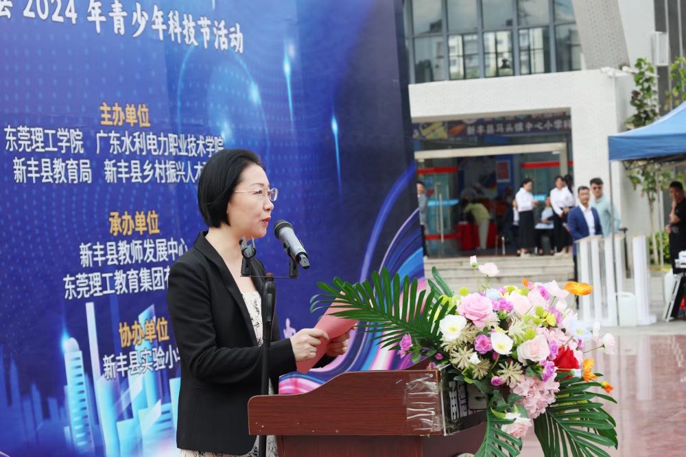 10月25日,由我校牵头,携手“双百行动”组团高校广东水利电力职业技术学院、新丰县教育局、新丰县乡村振兴人才驿站主办的“智汇新丰•科创未来”新丰县2024年青少年科技节在该县实验小学开幕。我校党委委员、宣传部部长邹琼出席开幕式并致辞。
