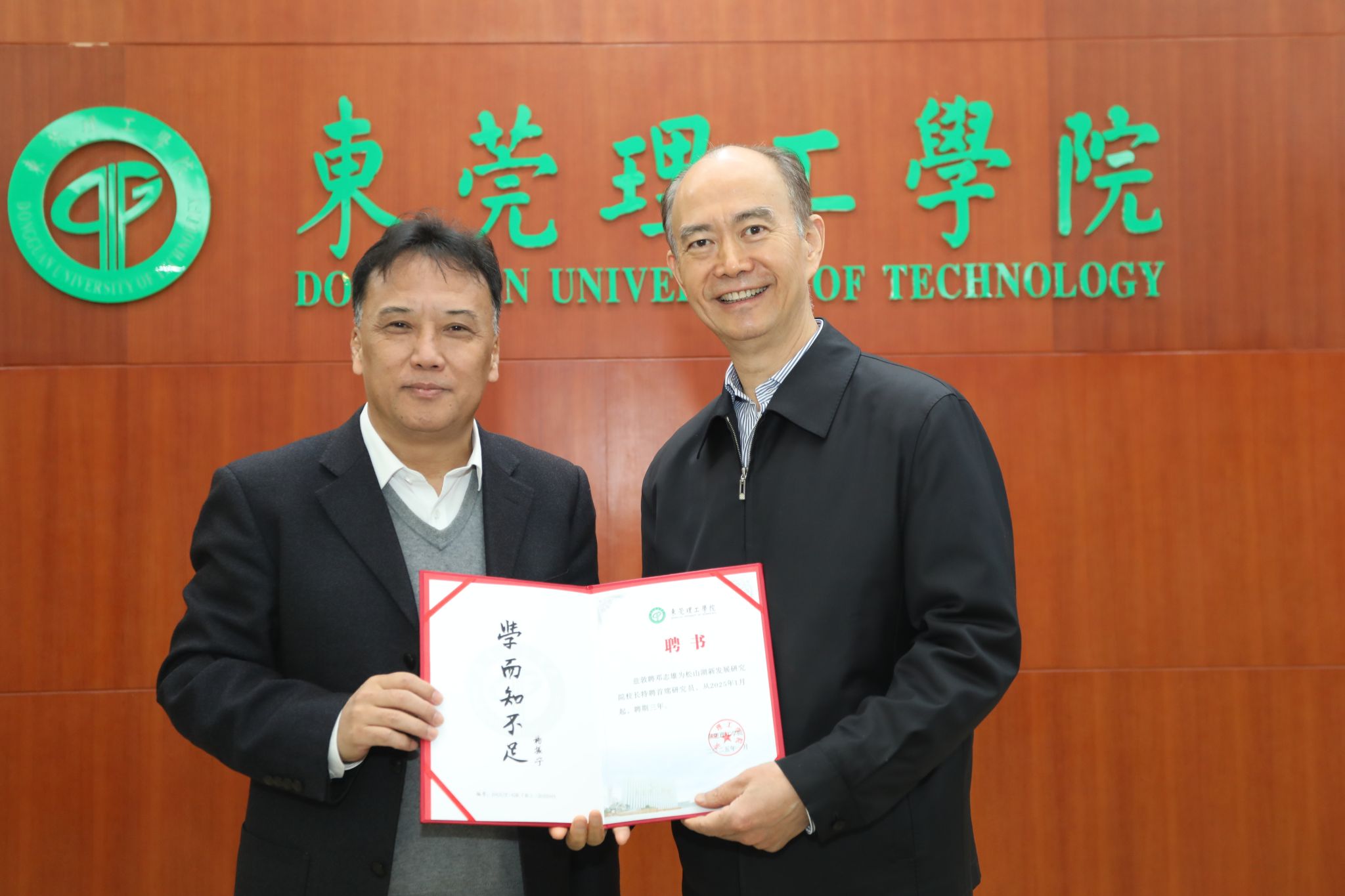 1月14日上午,我校举行仪式,敦聘邓志雄研究员为松山湖新发展研究院校长特聘首席研究员。