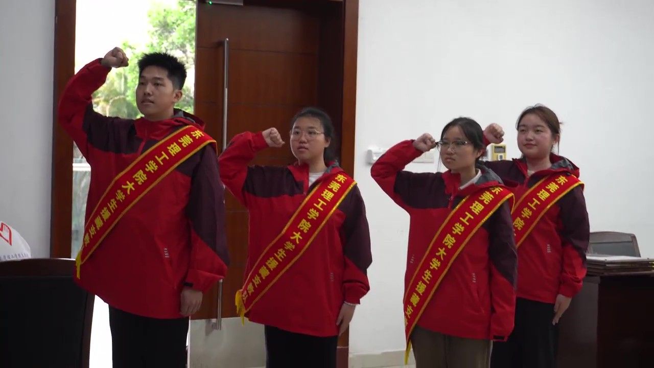 仪式上,学工部、团委主要负责人向支教队员授予铭牌、佩戴绶带,授支教队队旗。全体队员以铿锵誓言立下承诺:将秉承"学而知不足"的校训精神,以专业素养和奉献精神投身民族地区教育建设,助力边疆教育质量提升与民族团结事业发展。