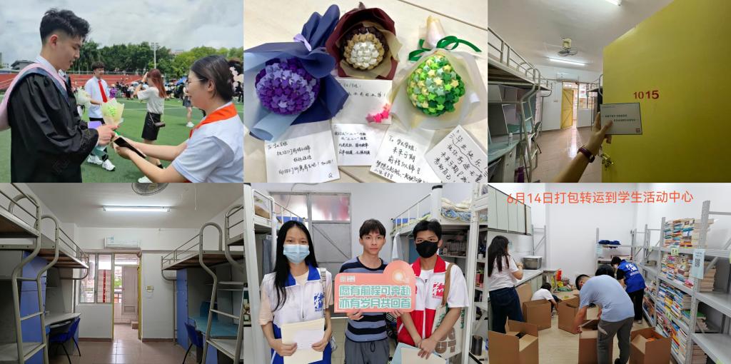 学校充分发扬志愿服务精神,举办社区毕业“跳蚤市场”,为毕业生及在校学生提供了一个安全规范、开放有序、物尽其用的平台,活动参与人数680人,完成交易近8千件;开展“学长行李我来搬”为毕业生办实事专项活动,理顺校内毕业手续办理各环节,做到毕业手续“一站通”服务;组织志愿服务队帮助毕业生顺利离校。注重感恩传承,开展宿舍“格式化”系列活动,累计参与宿舍近800间,引导毕业生对宿舍进行彻底清扫、还原,实现“格式化”;举办毕业生书籍漂流活动,参与漂流图书约4900本,将知识进行传递;为毕业生赠送毕业礼物,开展线上“‘夏’一站,再见”草地音乐节,让毕业生感受到莞工的温暖与美好祝愿。