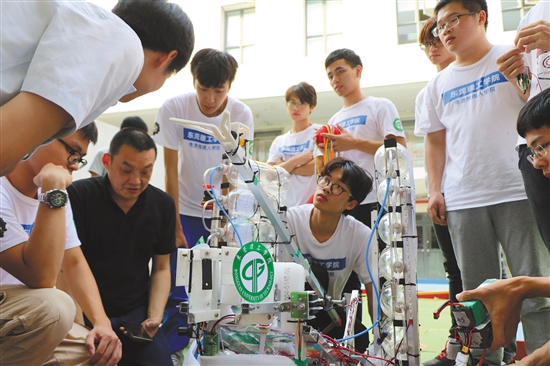 “这几年结合新工科的发展,我们积极调整了学科和专业的结构。在学科上,我们凝练了三个学科集群,一个就是围绕智能制造的学科集群,另一个就是绿色低碳的学科集群,还有一个是面向社会的创新服务集群。我们所有的专业所有的学科在这三个集群中都可以找到它相应的位置,都可以发挥它的作用。”据马宏伟介绍,根据新工科的要求,近几年,学校增设了23个专业(方向),改造了14个传统工科专业,今年新增数据科学与大数据技术、智能制造工程、建筑环境与能源应用工程3个专业招生。马宏伟表示,这样一些新的专业,比如大数据、人工智能、智能制造、绿色低碳等一些崭新的专业,给学生提供一个能够适应未来社会变化发展需求的新的选择。