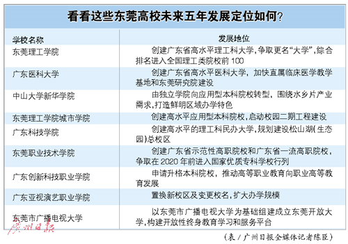 广州日报讯 (全媒体记者陈臣)昨日,市教育局在官网上发布了《东莞市高等教育发展“十三五”规划》(以下简称《规划》),《规划》除了给东莞现有高校进行了发展定位外,还提出未来五年将新建2~3所高校。