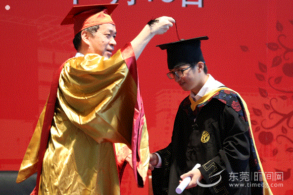 学士学位授予仪式上,校长李琳为毕业生行拨穗礼。(图片均由 见习记者 叶淑芬 摄)