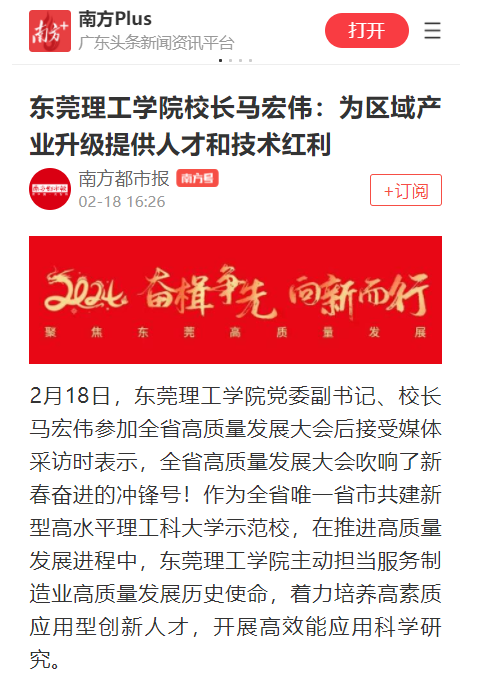 作为东莞高校代表之一,18日马宏伟校长赴深圳参加全省高质量发展大会。会后,马宏伟表示,本次大会吹响了新春奋进的冲锋号!接下来,九九精品视频一区在线久久久久久久久久毛片精品美女|国产99久久久久久免费看|中文精品99久久国产|国产69精品久久久久9999|精品久久久久久中文字幕无码|亚洲熟妇无码久久精品国产精品99|精品国产天堂综合一区在线将认真落实省委“1310”具体部署,聚焦“科技创新+先进制造”,充分发挥高校在教育科技人才一体化发展中的引领作用,主动融入和服务大湾区综合性国家科学中心先行启动区建设,坚持敢字为先、干字当头,以开年即开战的冲锋姿态,奋力书写广东发展新篇章。