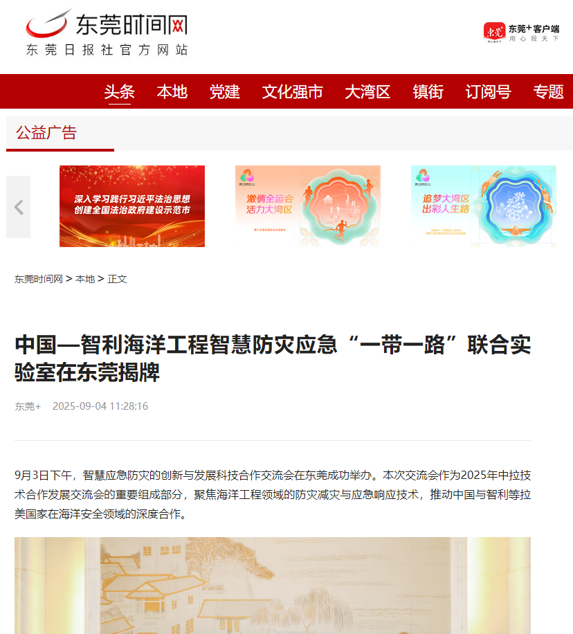 9月3日下午,智慧应急防灾的创新与发展科技合作交流会在东莞成功举办。本次交流会作为2025年中拉技术合作发展交流会的重要组成部分,聚焦海洋工程领域的防灾减灾与应急响应技术,推动中国与智利等拉美国家在海洋安全领域的深度合作。
