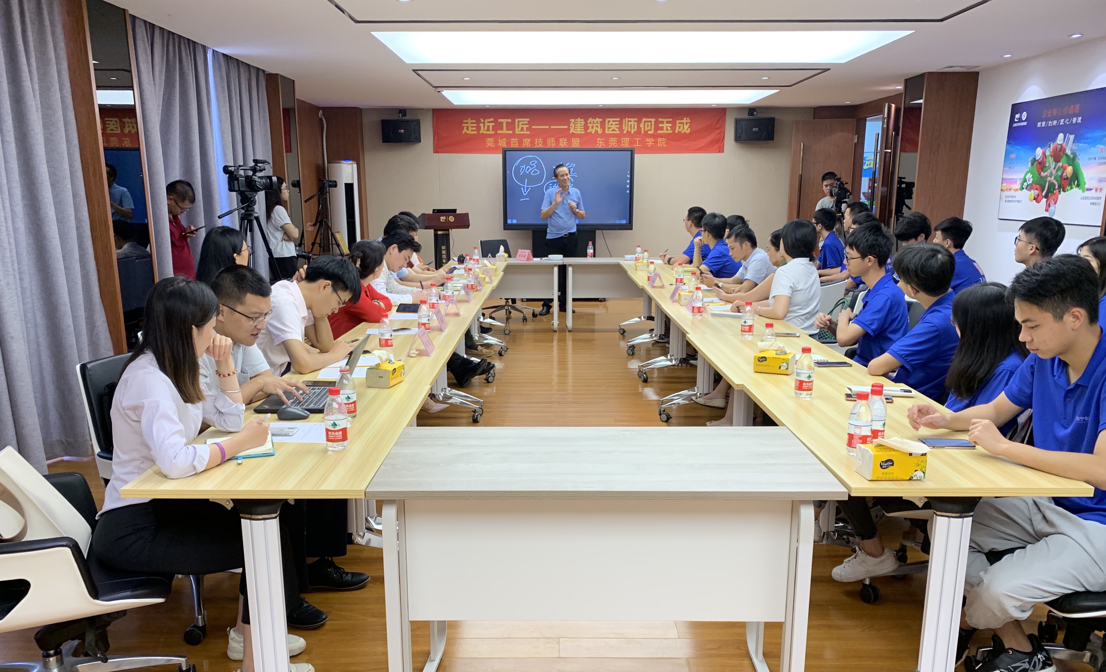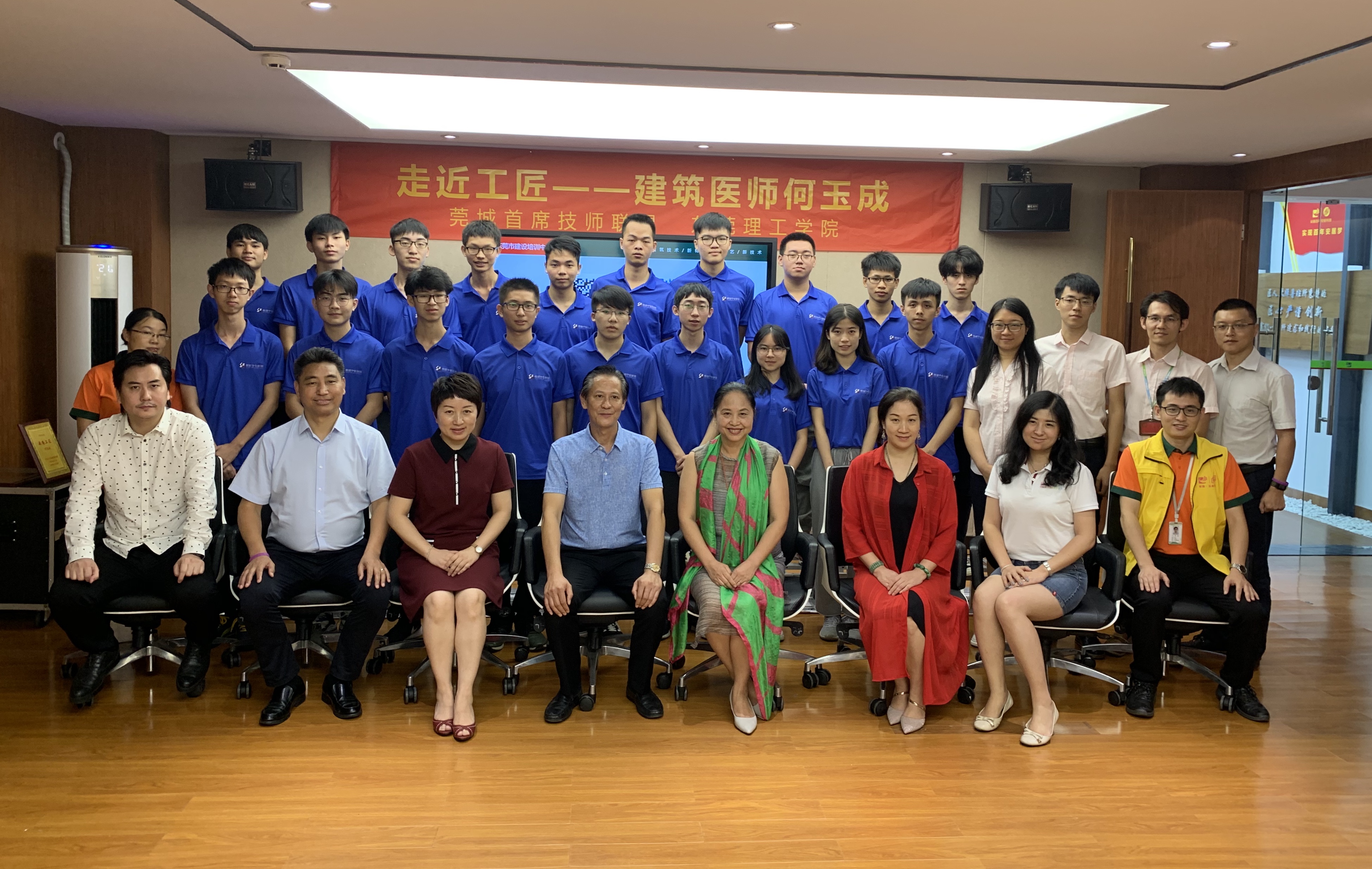 724日,我校与东莞市人力资源和社会保障局莞城街道(莞城首席技师联盟)共同组织了“走近工匠—何玉成”主题活动,我校2018级杨振宁创新班师生到彩丽建筑科技公司,走近工匠工作场所,现场观摩“百年安居技术体系”科技,近距离接触东莞市首席技师、百年安居总架构师何玉成,与何玉成深度对话,感受匠人精神。