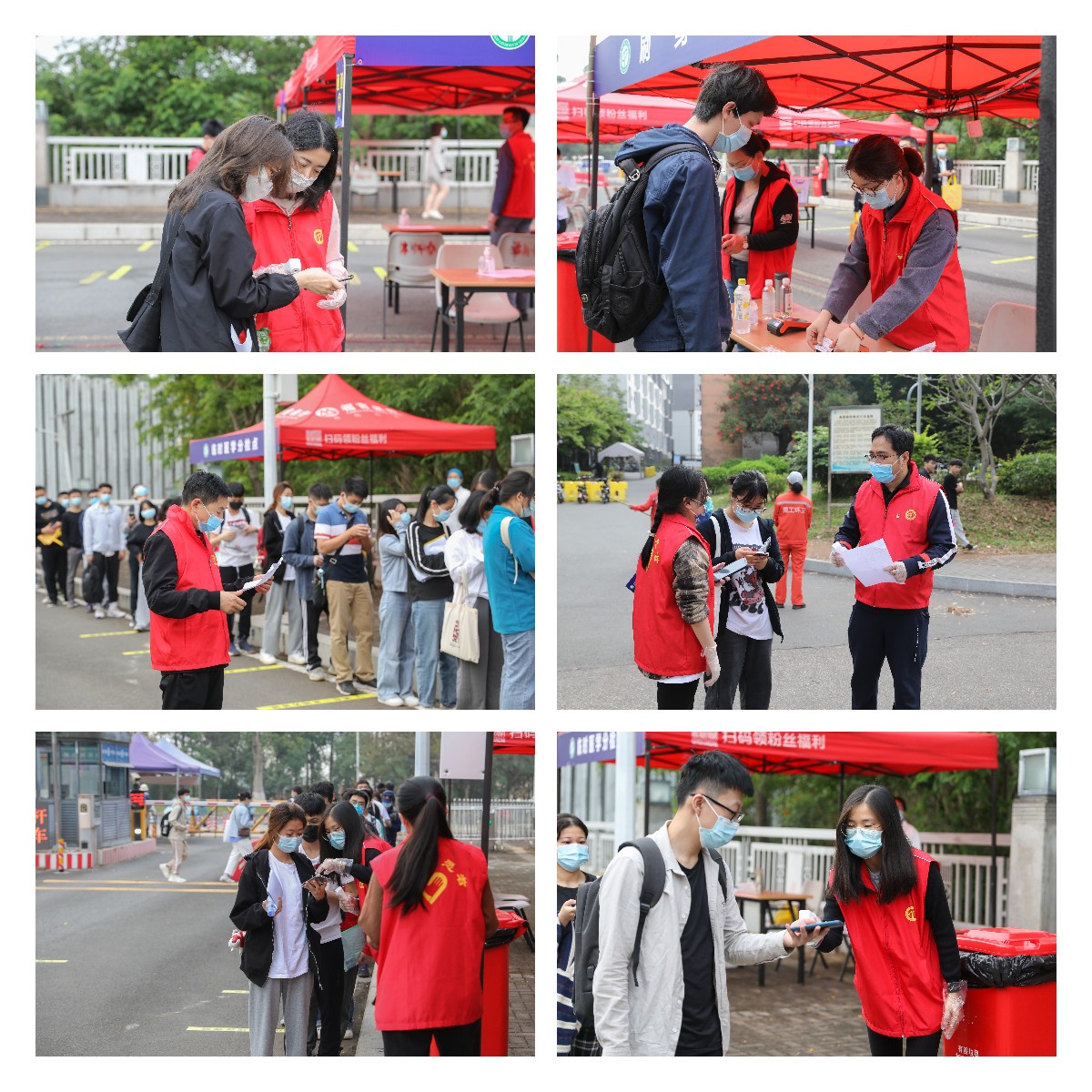 4月10—11日,我校迎来1400多名参加专升本考试的考生。学校把考生进校的引导、验证、验码、应急等疫情防控任务交给机关志愿者。机关党委随即动员、招募,除一些同志参加监考、考务等工作外,39名机关党员干部、教职工自觉在双休日穿上红马甲加入到服务考生进校的疫情防控工作中来。