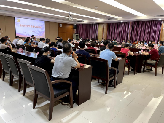 6月8日下午,在学术会议中心306,机关党委协同校办、党委组织部、校党史学习教育办等部门召开推进机关效能建设现场会,邀请学校各二级组织机构代表现场沟通、交流、咨询,机关各部门负责同志悉数参加。