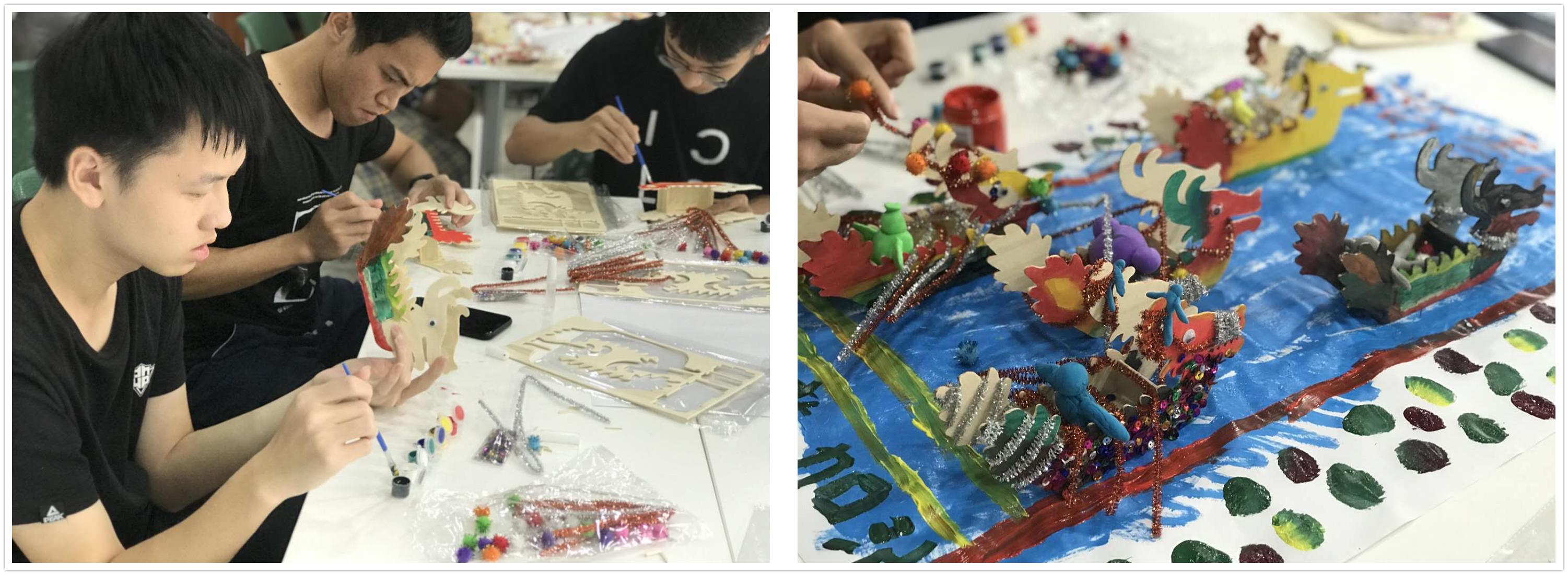 莞博分院开展了“粽情端午,齐制龙舟”活动,通过“端午知多少”和“DIY属于自己的小龙舟”两个环节,大家了解端午的由来、各地习俗,积极分享各自家乡的端午文化,绘制自己的“专属小龙舟”,并通过小组合作,“上演”一场“龙舟赛”。