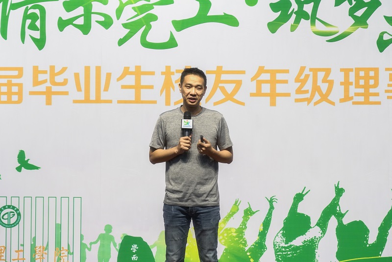 2019届毕业生年级理事代表沈聪作为校友年级理事代表发言,他感谢母校的栽培之恩,也表达了对离校的不舍,建议广大毕业生要在学校校友会的平台上发扬“传帮带”作用,传承莞工人的优良传统,积极服务校友、服务学校、服务社会。