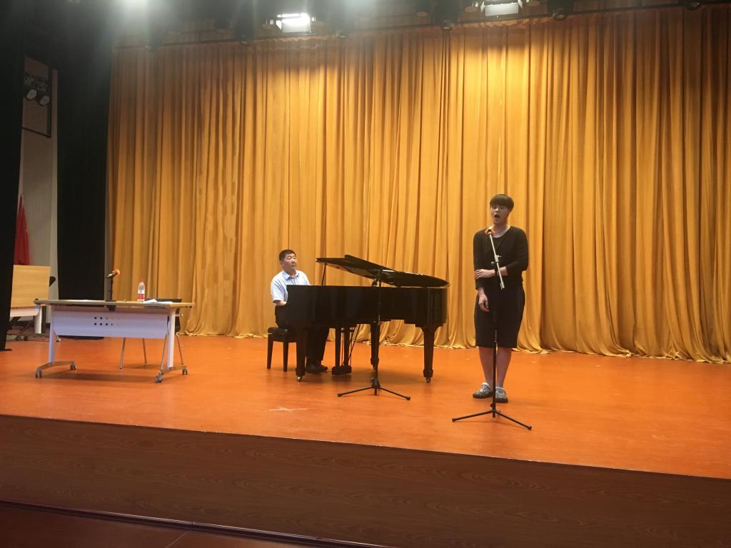 于捷老师首先强调学习声乐的态度,指出声乐的学习除了天生的嗓音条件外,关键还要靠自身的努力。随后,他从声音的概念,美声唱法、民族唱法、通俗唱法的共性和特性,以及真假声的混合进行了讲授,并请出两位同学现场示范,纠正其演唱过程中存在的普遍问题。