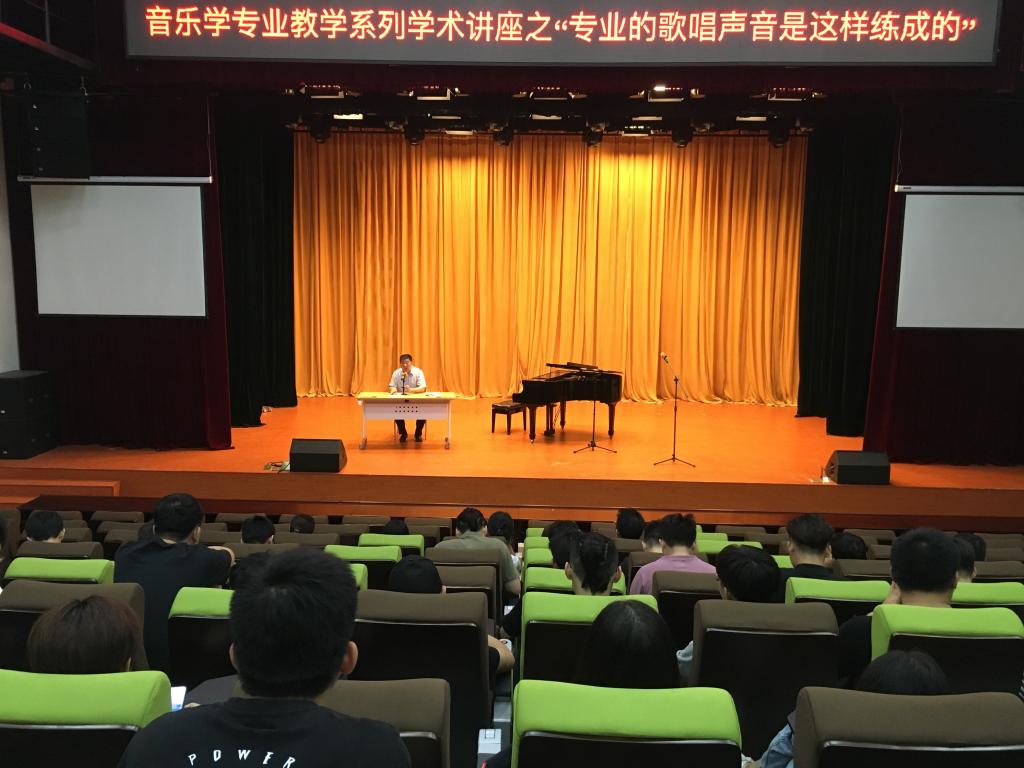 6月12日晚,由教育学院(师范学院)主办,声乐教研室承办的音乐学专业系列学术讲座之“专业的歌唱声音是这样练成的”在学生活动中心小剧场举行。讲座邀请了教育学院(师范学院)声乐副教授于捷,为音乐学专业的学生和声乐教研室全体老师讲授专业知识。