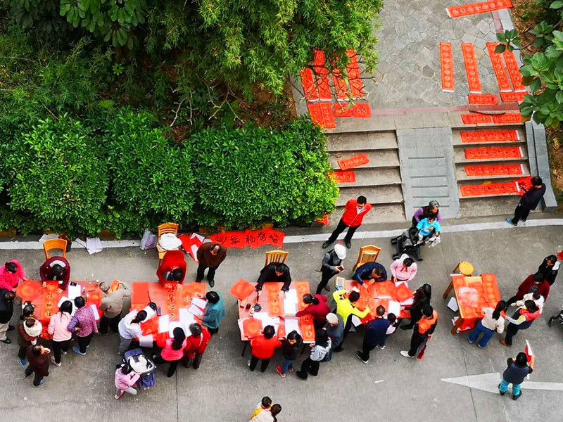 1月21日,主题为“挥毫写春意佳联助高建”的送春联活动在教师村业主活动中心举行。校教职工书画协会的杨万江、杨继龙、宋跃、莫振轩四位老师,现场挥毫,为现场300多个教师村住户,书写应节春联。现场拿到春联的老师,个个笑逐颜开。在朋友圈见到火热现场的老师,也纷纷电话、微信请求在校的老师帮忙,请现场的四位老师书写春联。