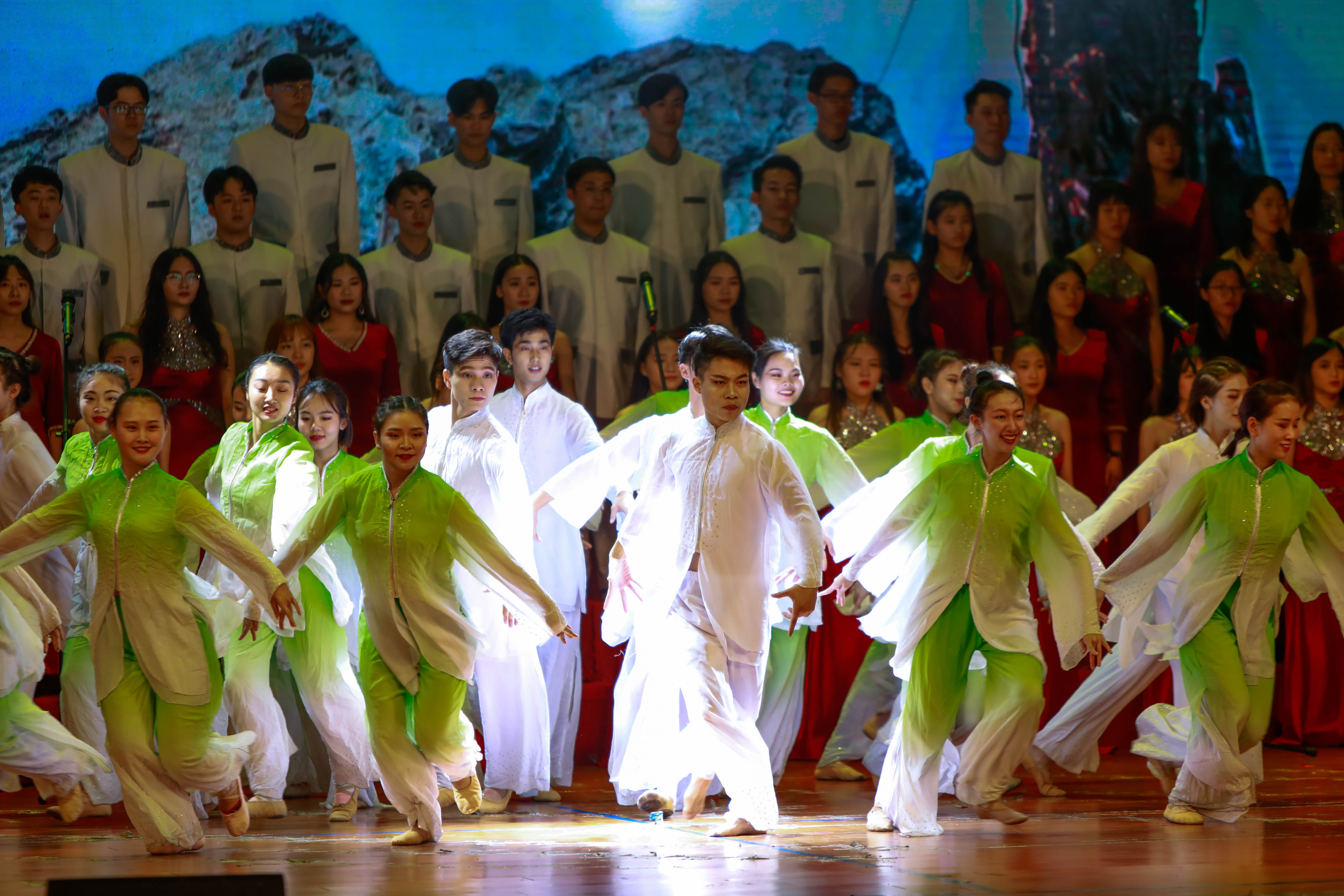 晚会的节目丰富多样。歌曲类节目有合唱《松山湖,我理想的家园》,张扬的红与朴实的绿相结合,再加上动听的歌声,创造了一派生机盎然的景象;经典歌曲联唱《心中的歌》,不但画风多变,而且旋律优美,令人流连忘返;女声独唱《国旗升起》,当国旗升起那一刻,仿佛世界都沸腾了起来;舞蹈表演有经典篇目《传承》和《彩虹桥》,不用千言万语,仅一个动作,一个眼神便可传达出万般情绪;乐器合奏《我的祖国》,高亢的号,低沉的琴,恢弘的男女声,娓娓述说着对于祖国的热爱;弹拨乐合奏《春郊试马》向观众展现出中国传统乐器的魅力;杨万江老师的诗朗诵《我骄傲,我是中国人》,慷慨激昂的诗句,令在场师生感到无比振奋与自豪。整场晚会中,歌声悠扬,鼓声悠远,舞姿曼妙,台上的表演者以其精湛的技术呈现出一场视觉、听觉的盛宴,台下的观众听得陶醉,看得入迷。晚会在热烈的掌声中圆满落幕。