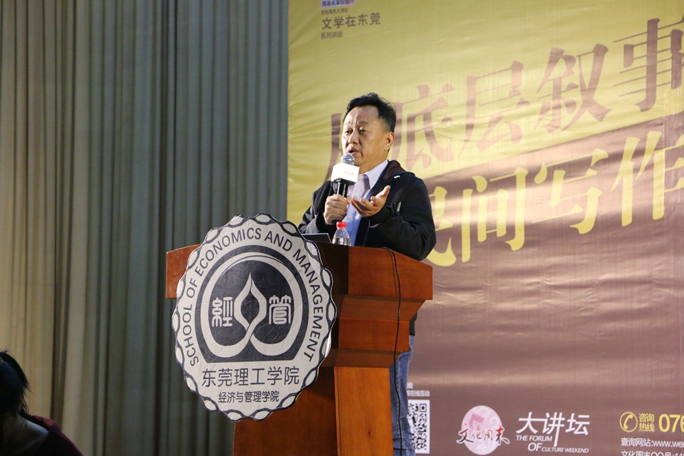 11月29日晚,经管论坛第15期讲座“文学在东莞——从底层叙事到地方性与民间写作”在莞城校区大礼堂拉开序幕。