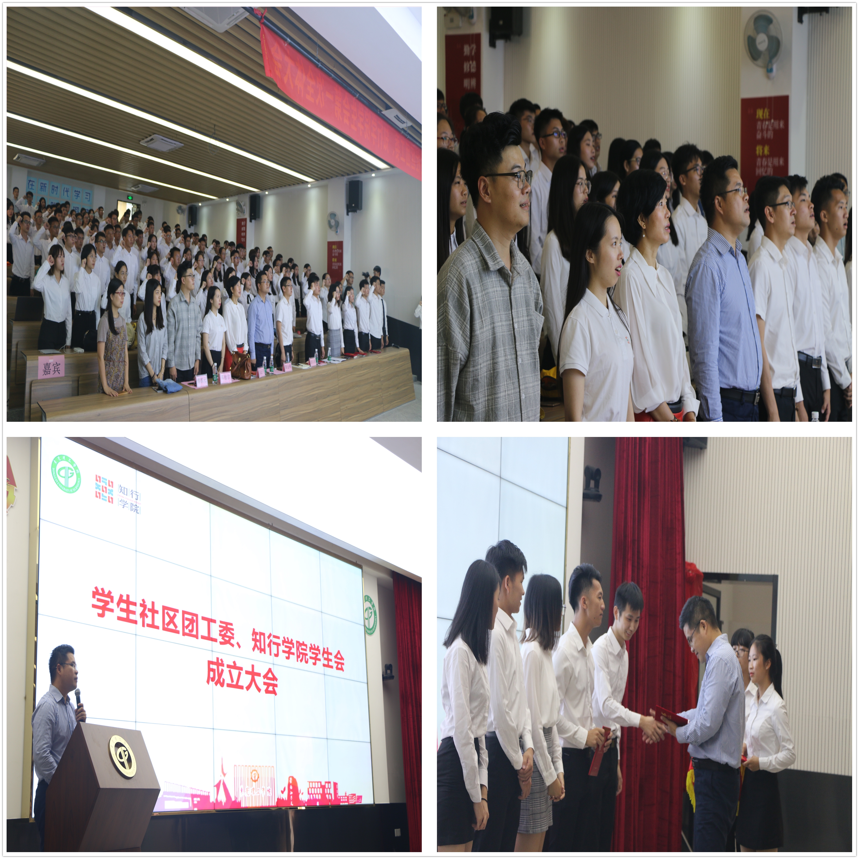 这是知行团学的成立大会,参加本次大会的有学生社区党工委书记、学生工作部部长、校团委书记黄金和,学生社区知行学院常务副院长苏亚玲,学生社区知行学院教师代表,知行团学全体成员以及各分院学生代表。
