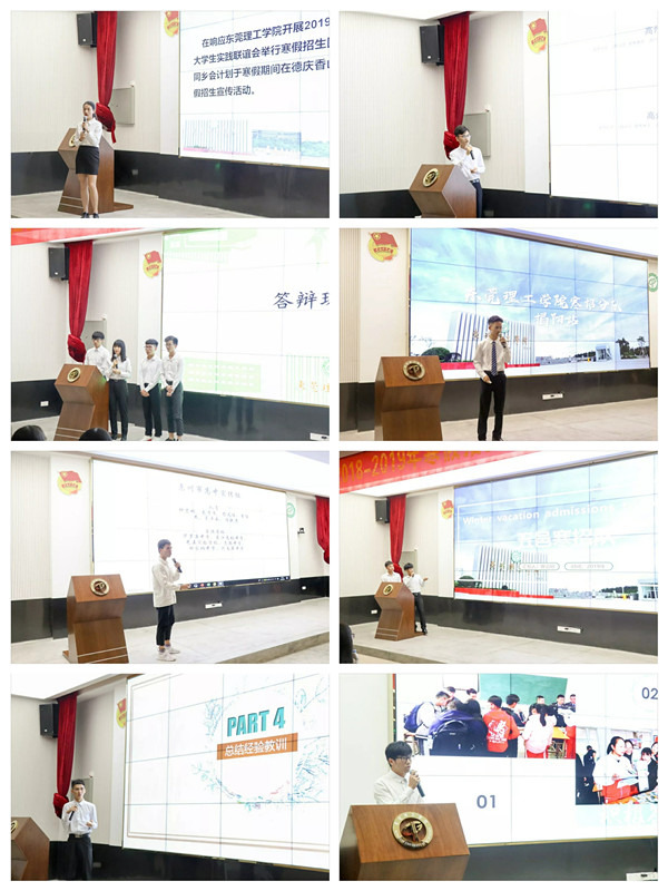 大会表彰了10支优秀招生宣传分队。会上,优秀招生宣传分队分别作了宣传成果展示及经验分享。各宣传队伍结合自身的专业特色,制作视频、书签、小纪念品等丰富的宣讲资料,创新宣传模式,以多样的宣传形式,向母校中学的学弟学妹介绍、宣传、展示莞工特色和学子风采,深化了学弟学妹对莞工的了解,增强了学校的知名度。
