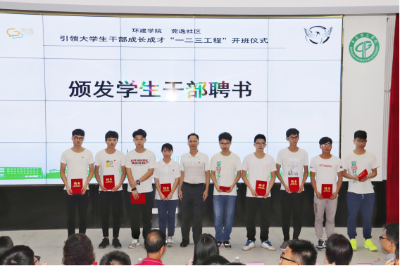 知行学院莞逸分院副院长陈举铭和袁荫贞分别向知行学院莞逸分院以及环建学院的学生干部颁发了聘书。