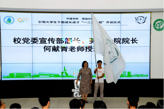 为深入贯彻习近平新时代中国特色社会主义思想,深入贯彻党的十九大精神和十九届二中、三中全会精神,深入贯彻习近平总书记重要讲话精神,按照团省委、校团委“灯塔工程—青年大学生思想引领行动”的总体部署,建设“党建引领、双工联动、社区育人”新格局,提升二级学院团学干部和社区学生干部的思想政治工作水平,更好地为广大同学服务,10月13日,环建学院与知行学院莞逸分院于学生中心联合开展引领大学生成长成才“一二三”工程启动仪式暨2018年学生干部培训班开班仪式。校党委宣传部部长、知行学院莞逸分院院长何献青为引领大学生成长成才“一二三”工程培训班授予班旗,监誓学生干部的宣誓仪式,以及为培训班开讲首课。校党委学生工作部、环建学院、知行学院莞逸分院相关负责人出席了活动。