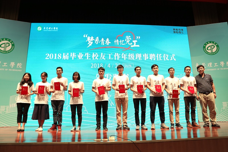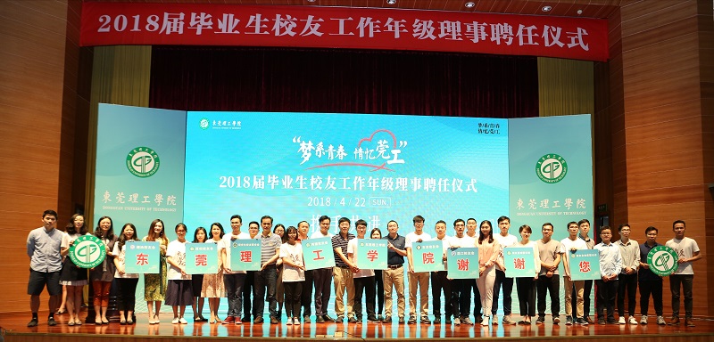 4月22日,我校校友会在学术会议中心举行主题为“梦系青春·情忆莞工”的2018届毕业生校友工作年级理事聘任仪式。校友工作办公室主任崔学海、二级学院校友工作负责人、校外二级校友会会长以及100余名校友工作年级理事参加了聘任仪式。