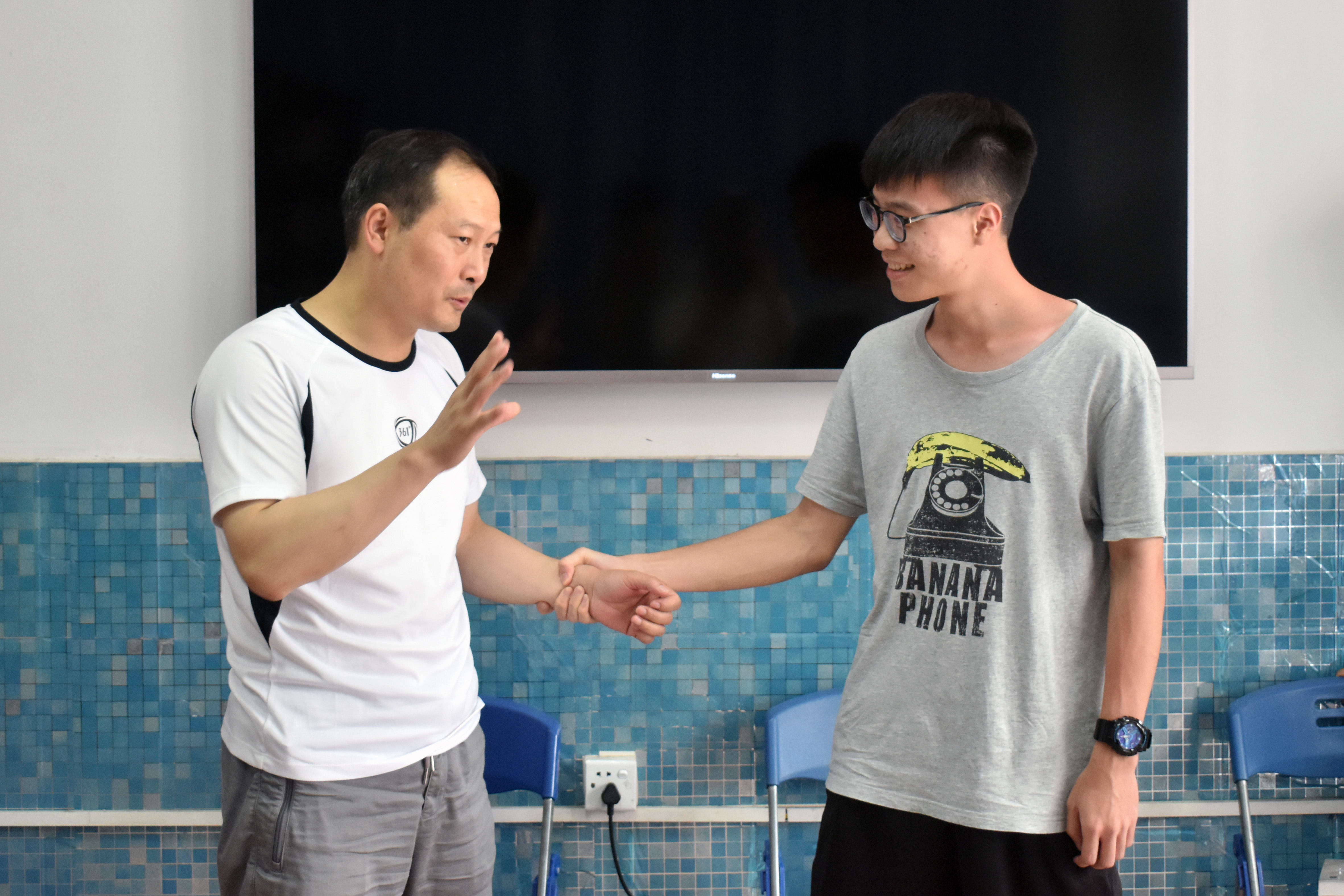 邱海洋结合习近平提出的构建 “人类命运共同体”,从“道”“学”“术”三个方面说明在古代,中国人对世界武术的感悟比其他国家领先,但因为“学”的落后,导致国学的薄弱的现状;又以书法、中医、武术三个例子结合心理学阐述了武术科学化和现代化的必要性。邱海洋在现场示范了一些实用的“女子防身术”招法并与老师、同学们进行互动探讨,表明武术对锻炼人的意念、提升智慧及时空能力、调整身体以达到保健作用的重要意义。