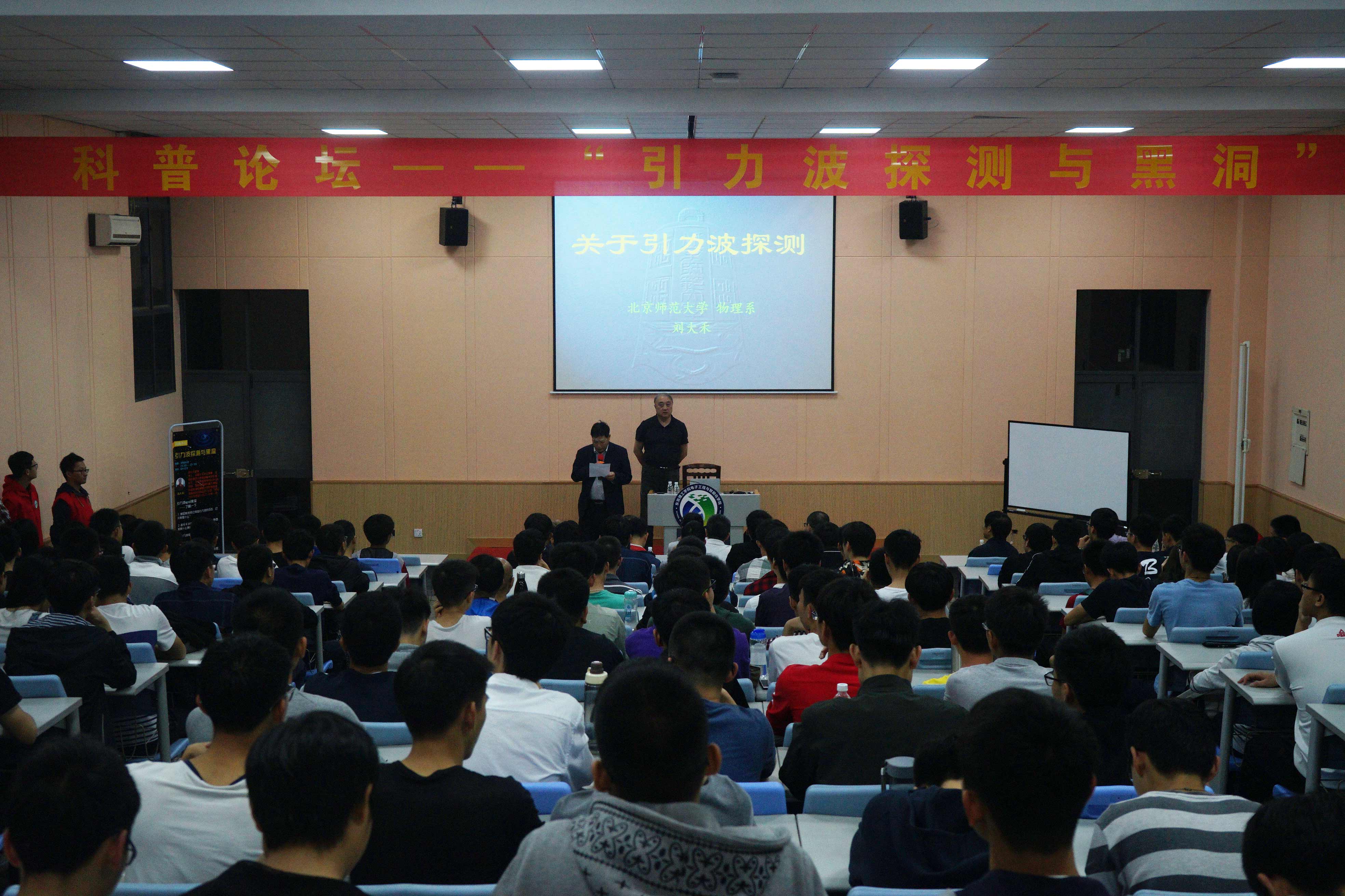 3月26日晚,中国科学院老科学家科普演讲团成员、北京师范大学物理系知名专家学者刘大禾教授受邀来我校开展了一场关于引力波探测与黑洞的专题科普讲座,电子工程与智能化学院部分领导老师和全校两百多名学生到现场聆听。
