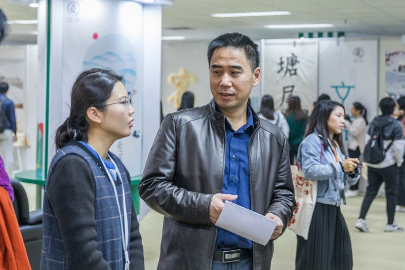 12月28日下午,我校文学与传媒学院文化产业专业首届毕业展在松山湖校区图书馆举行开幕仪式。校图书馆馆长黄忠顺,计算机与网络安全学院党支部书记路晓军,文学与传媒学院院长田根胜、副院长余意、严前海、副书记阎江与文产专业百余名师生同东莞市文化周末负责人曾理主任、松山湖台商协会会长杨水源、松山湖文体局李婷及市内主要媒体记者参与活动。我校副校长马宏伟和教务处处长李勇也来到现场,欣赏了每一个摊位作品,对师生们的努力和成果做了充分的肯定,并提出很多有创见的观点和见解。