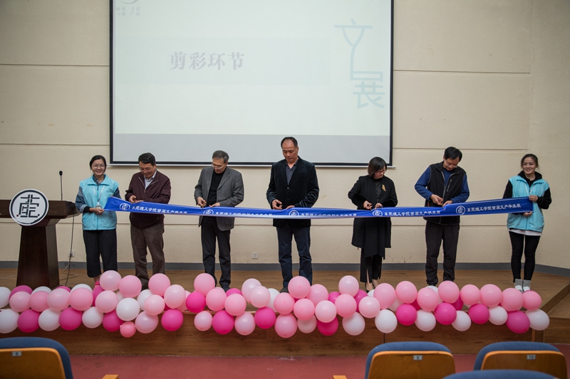 开幕式上,一段记录文产人策展的视频花絮,展示了文产人实地调研、课堂学习、加工设计文创产品的历程,也传达了中文系主任许燕转、指导老师陈昱甫及班主任吴寒柳对同学们的期许。田根胜院长上台致辞,认可了同学们的付出,并对关注、支持首届文产毕业展的专业老师、产业界表示感谢。