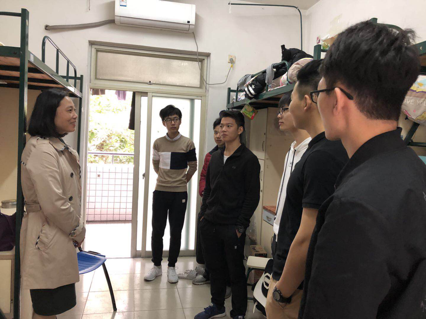 为了进一步做好寒假期间学生工作,环建学院通过学生干部会议、Q群、微信平台等进行安全教育,强化学生安全意识,并按照学校要求执行辅导员电话值班制度,建立留校学生微信群,对留校学生实行动态管理。近日,党总支副书记袁荫贞带领学院辅导员对学生宿舍进行走访,前往各个学生宿舍,了解留校学生的假期安排,关心他们留校期间的学习生活,并叮嘱同学们要注意锁好宿舍门窗、切断电源,避免安全事故。